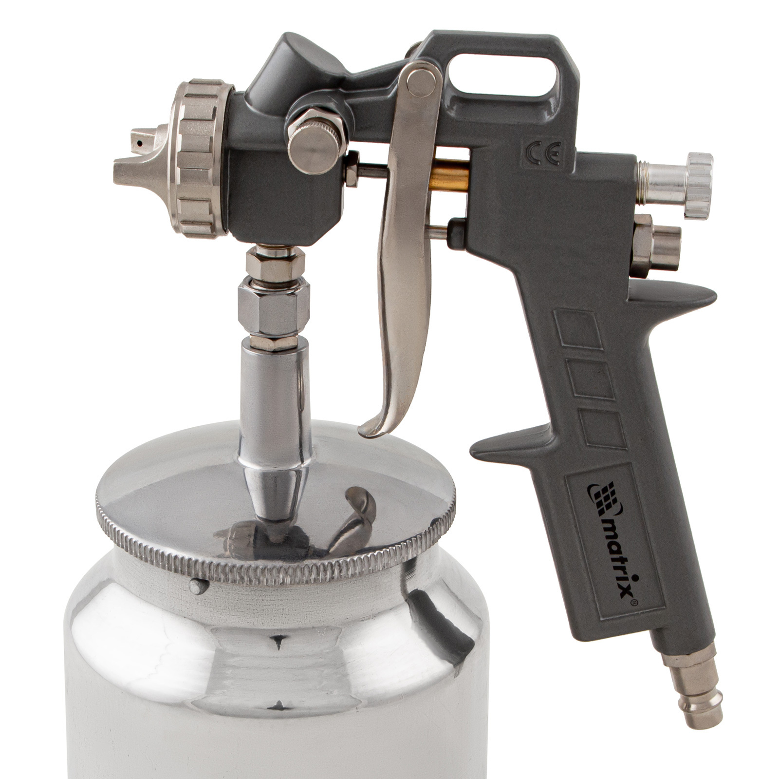 - Удобная эксплуатация — бак краскораспылителя расположен снизу и не загораживает обзор мастеру.