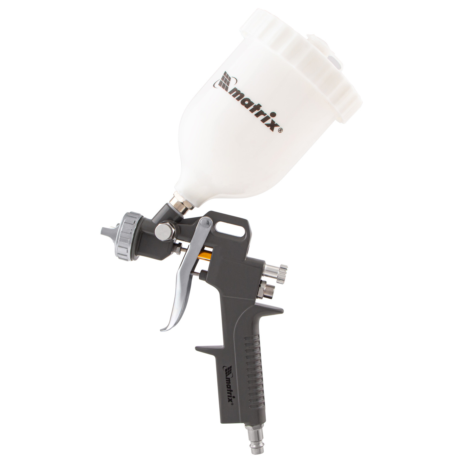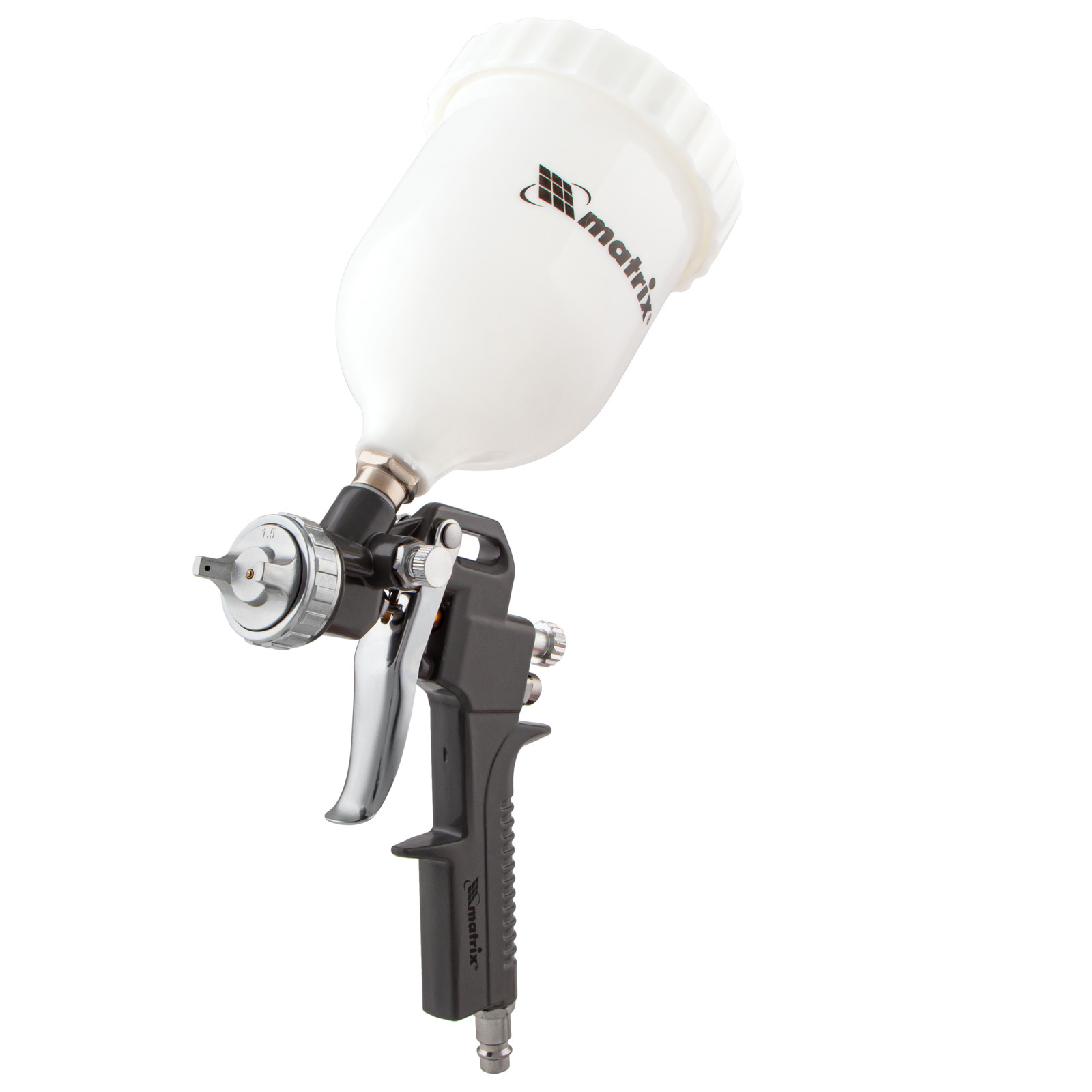 - Контроль количества краски — бак краскораспылителя выполнен из прозрачного пластика, а благодаря верхнему расположению его удобно заправлять.