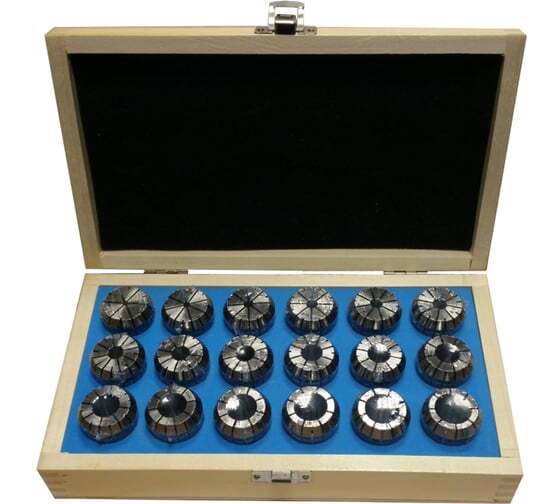 Набор цанг ER32 GRIFF b225530 применяется для зажима металлорежущего инструмента. Сами цанги закрепляются в специальных цанговых патронах. В комплекте 18 цанг размером от 3 до 20 мм. Изготовлены в соответствии с DIN6499.