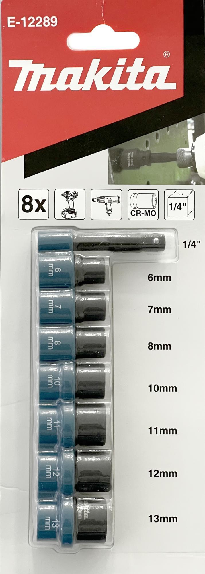 В нашем интернет магазине NOVA Prom Group (https://npgdom.ru), Вы можете купить товар – Набор ударных торцовых головок (6, 7, 8, 10, 11, 12, 13) адаптер 1/4, E-Form, 8 шт Makita E-12289. Оформить покупку легко с помощью корзины или отправить запрос нам на электронную почту. Подробную информацию по товару вы можете получить у наших менеджеров или в службе технической поддержки Макита по телефонам указанным на сайте.