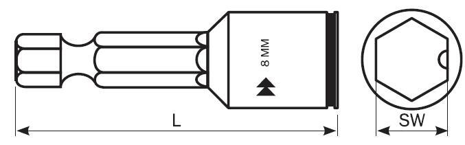 Данная насадка предназначена для использования с шуруповертами и подходит для работы с гайками, шурупами, втулками и другими крепежными элементами с шестигранной головкой.