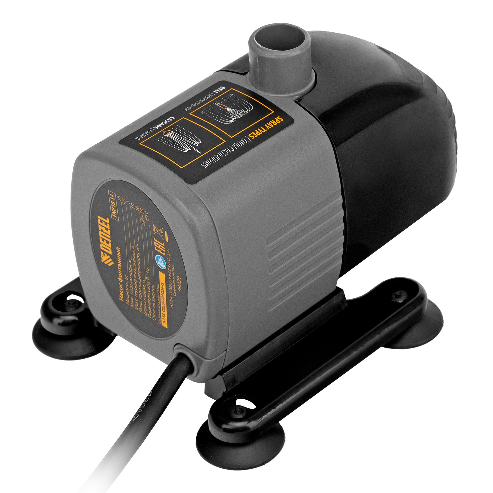 Фонтанный насос Denzel FNP18-14 99030 мощностью 18 Вт, с насадками колокольчик/каскад, перекачивает 750 л воды в час и обеспечивает максимальную высоту подъема 1,4 м. Позволяет создать декоративный фонтан, украсив водоем и оживив ландшафт дачного участка. Установив одну из двух входящих в комплект насадок, можно получить наиболее подходящий тип струи: в виде колокольчика или каскада.