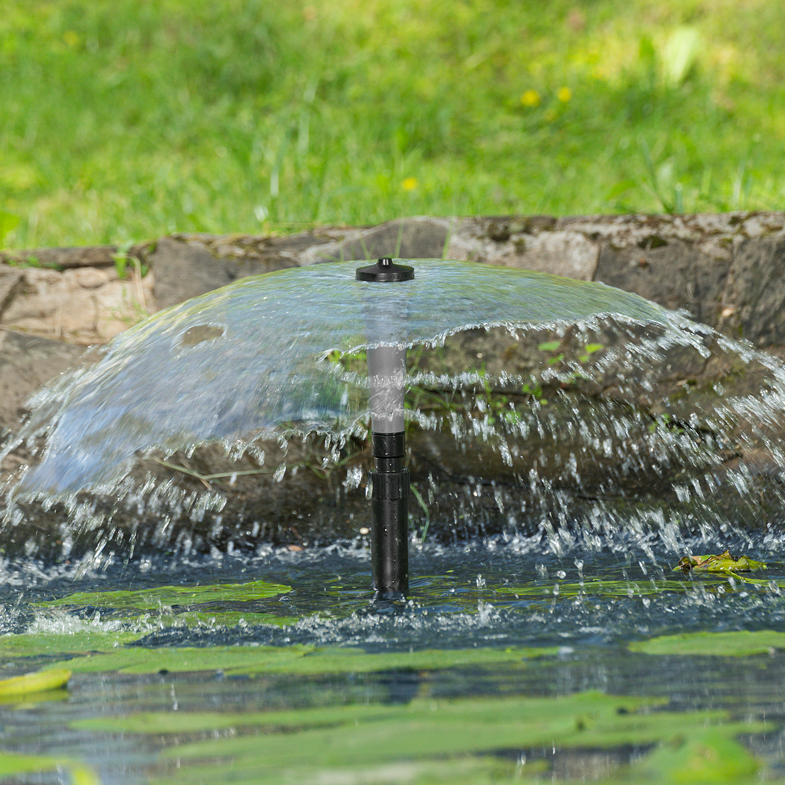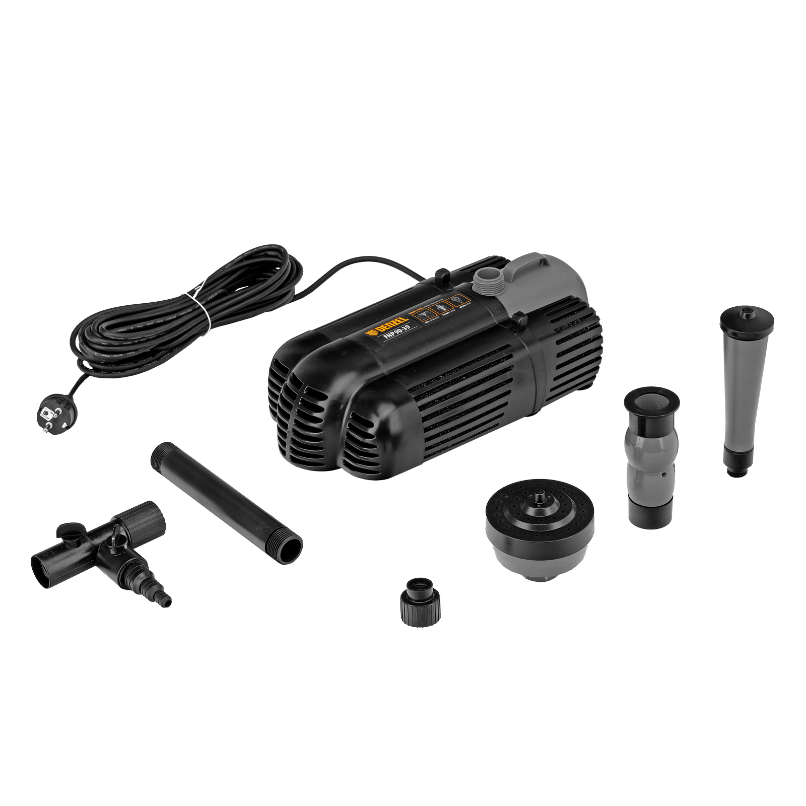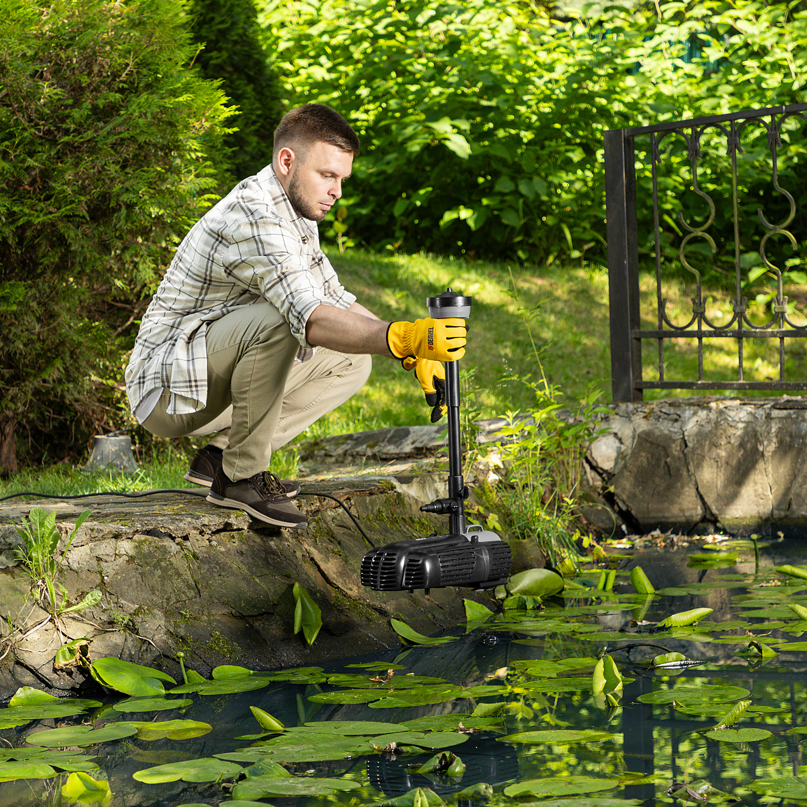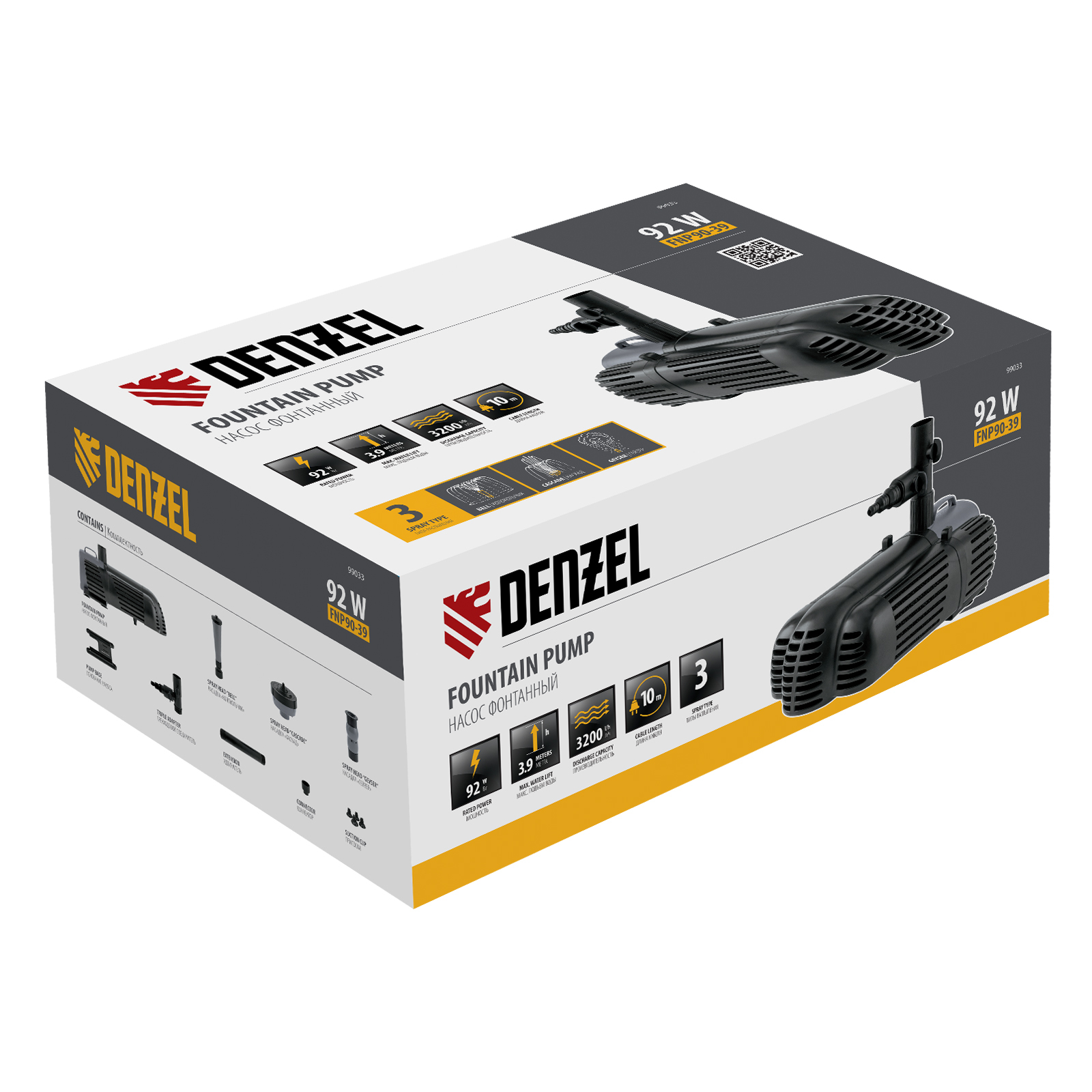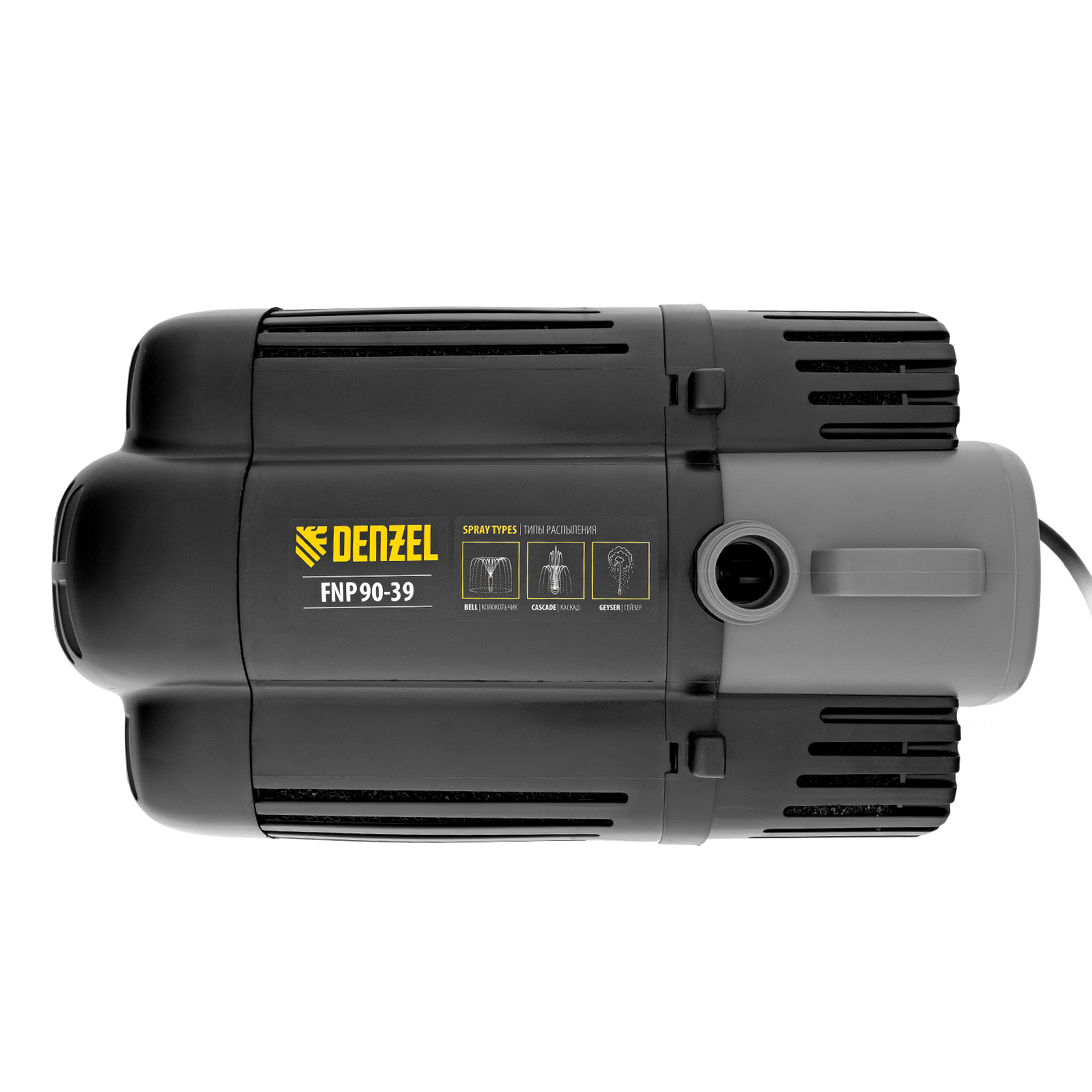 Фонтанный насос Denzel FNP90-39 99033 мощностью 92 Вт, с насадками колокольчик/каскад/гейзер, перекачивает 3200 л воды в час и обеспечивает максимальную высоту подъема 3,9 м. Позволяет создать декоративный фонтан, украсив водоем и оживив ландшафт дачного участка. Установив одну из входящих в комплект насадок, можно получить наиболее подходящий тип струи: в виде колокольчика, каскада или гейзера. Также в конструкции насоса предусмотрен специальный патрубок для создания водопада.