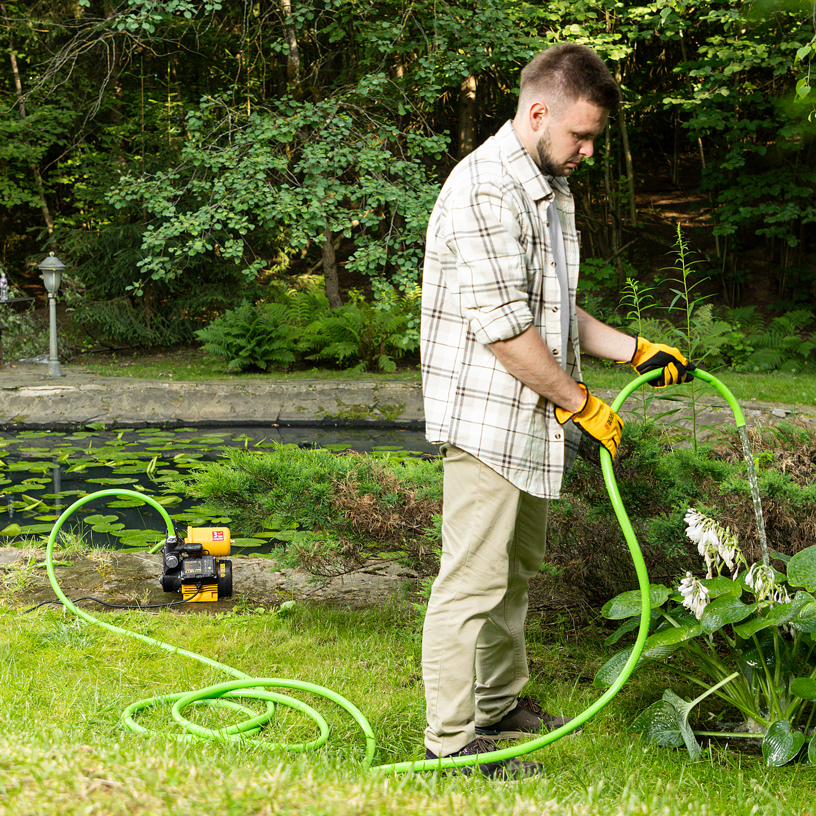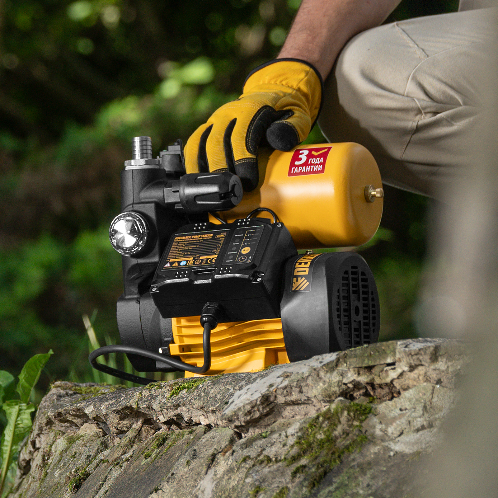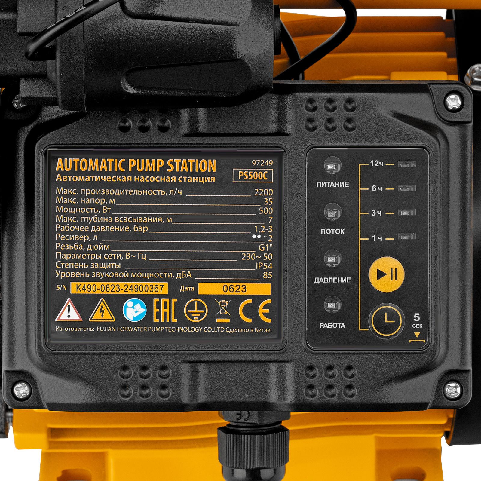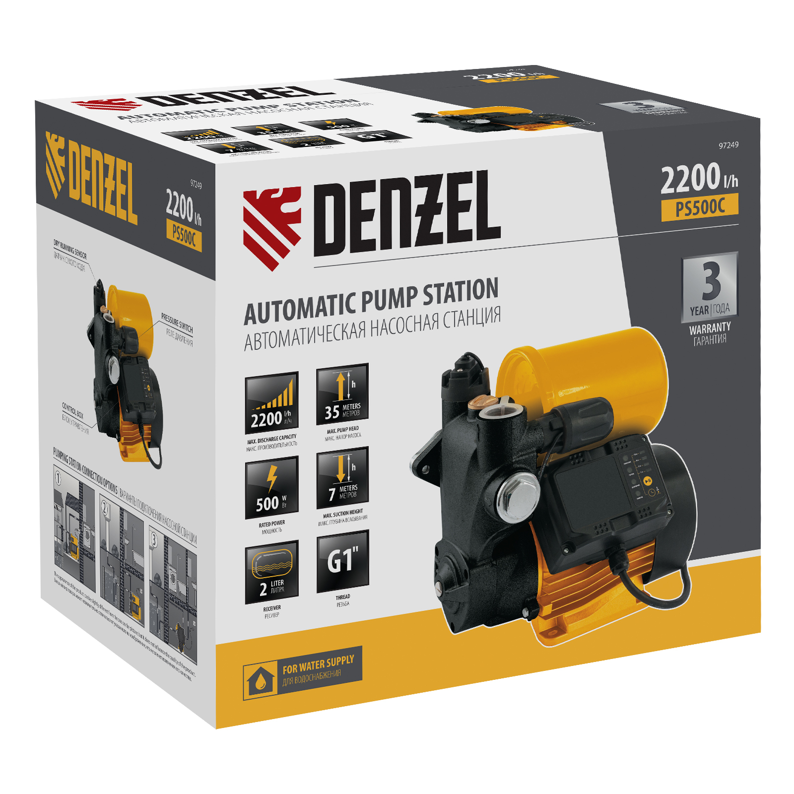 Насосная станция Denzel PS500C 97249 мощностью 500 Вт, с блоком управления и ресивером объемом 2 л, способна перекачивать 2200 л чистой воды в час и обеспечивает напор до 35 м. Возможен забор воды с глубины до 7 м из колодцев, скважин и других источников. Надежный асинхронный двигатель позволяет поддерживать стабильное давление в напорной магистрали в течение длительного времени. Станция позволяет организовать систему бытового водоснабжения на даче.