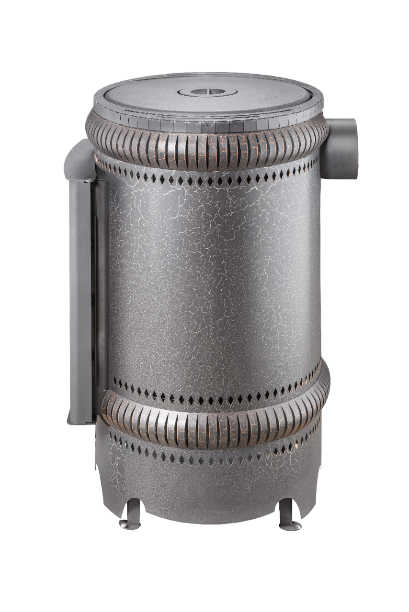 Топка выполнена из жаростойкой нержавеющей стали AISI 439 толщиной 3 мм. Декоративный кожух тоже стальной, украшен узором, вырезанным лазером. В конструкции печи применена технология подового горения.