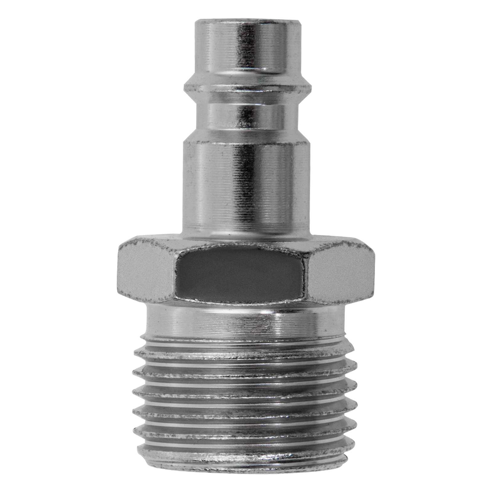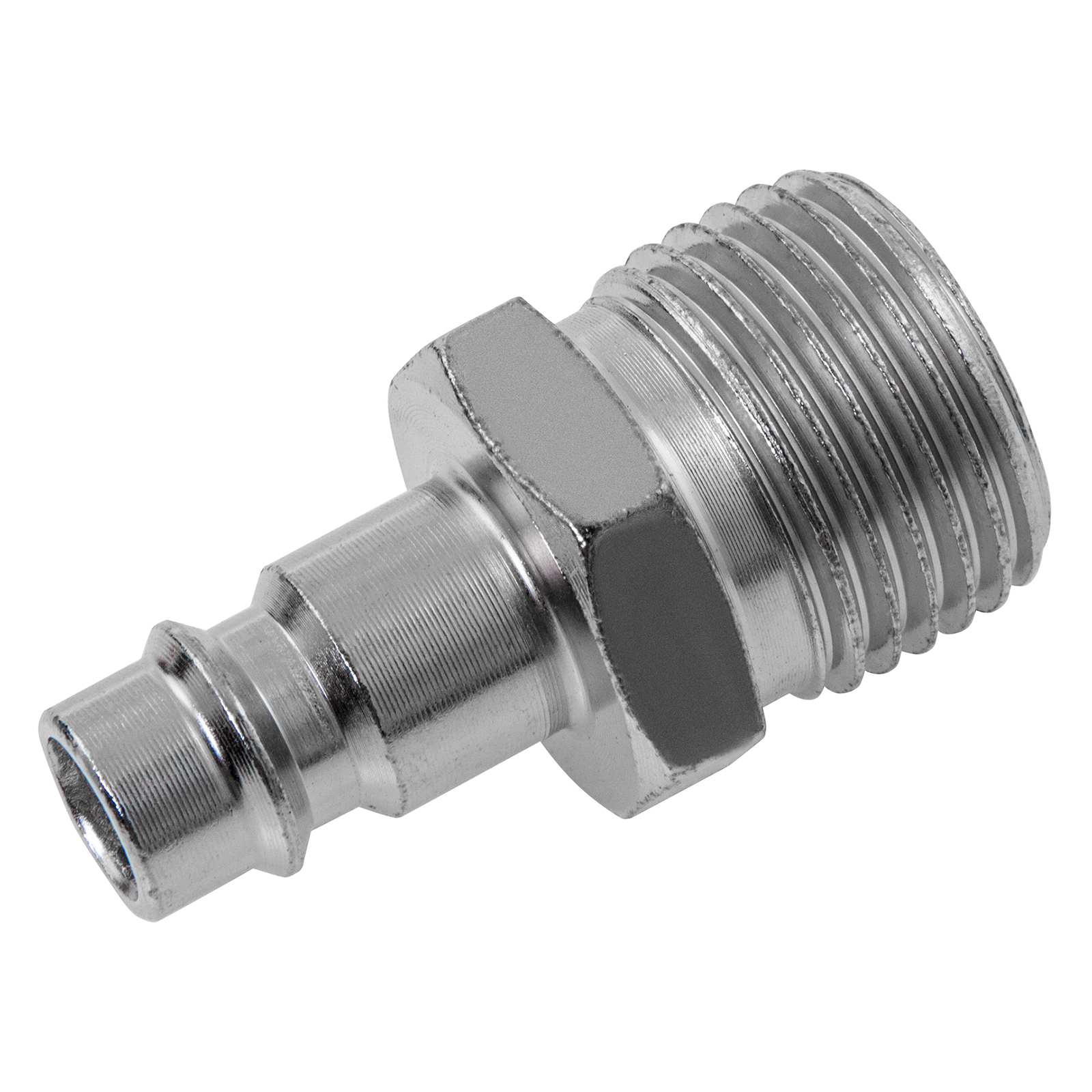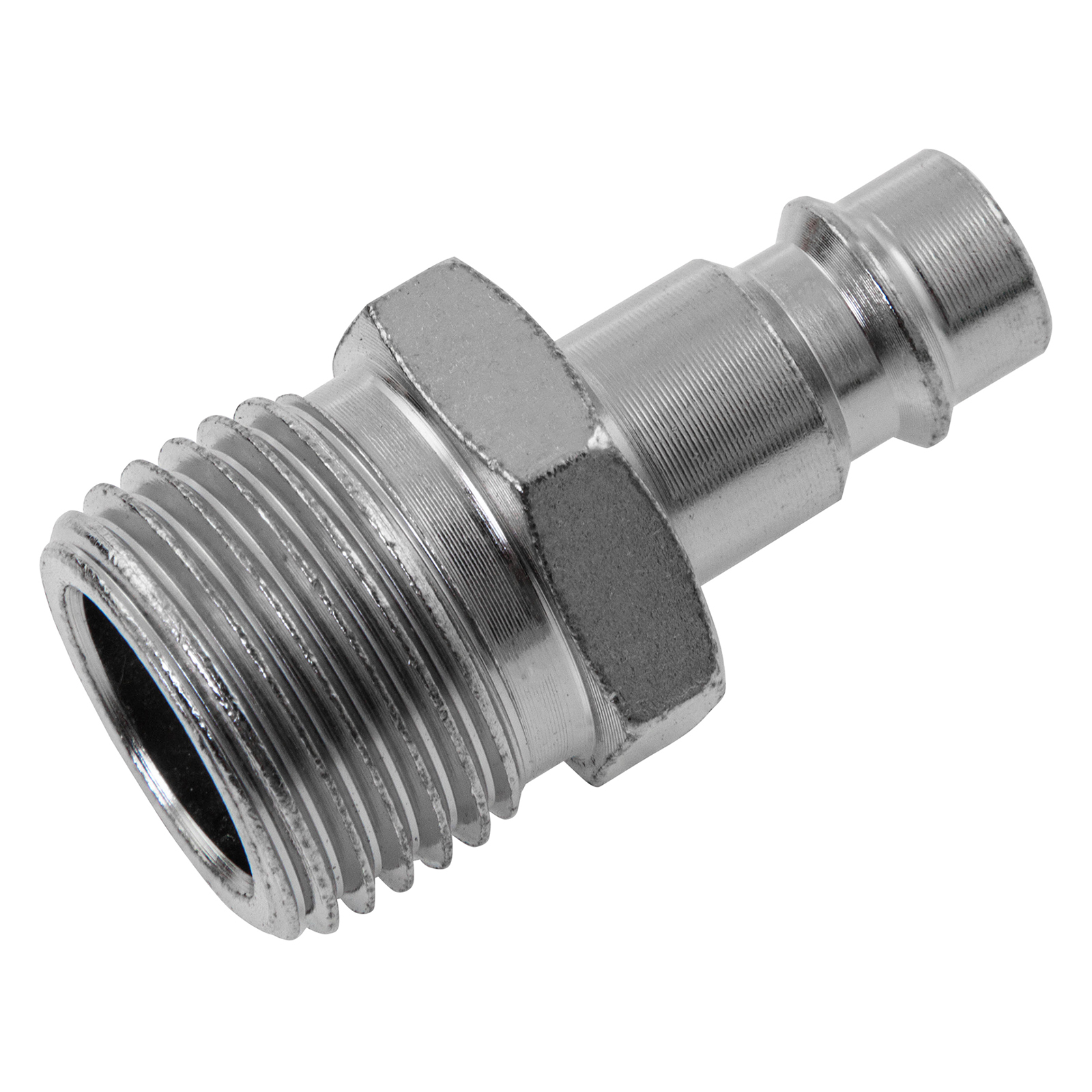 Универсальный быстросъемный ниппель Stels 57067, 2 шт. в упаковке, предназначен для перехода с внешней резьбы 1/2 дюйма на рапид типа «папа» для соединения пневматического шланга и компрессора. Используется для работы с пневмоинструментом, будет полезен на строительной площадке, в гараже и автосервисе.