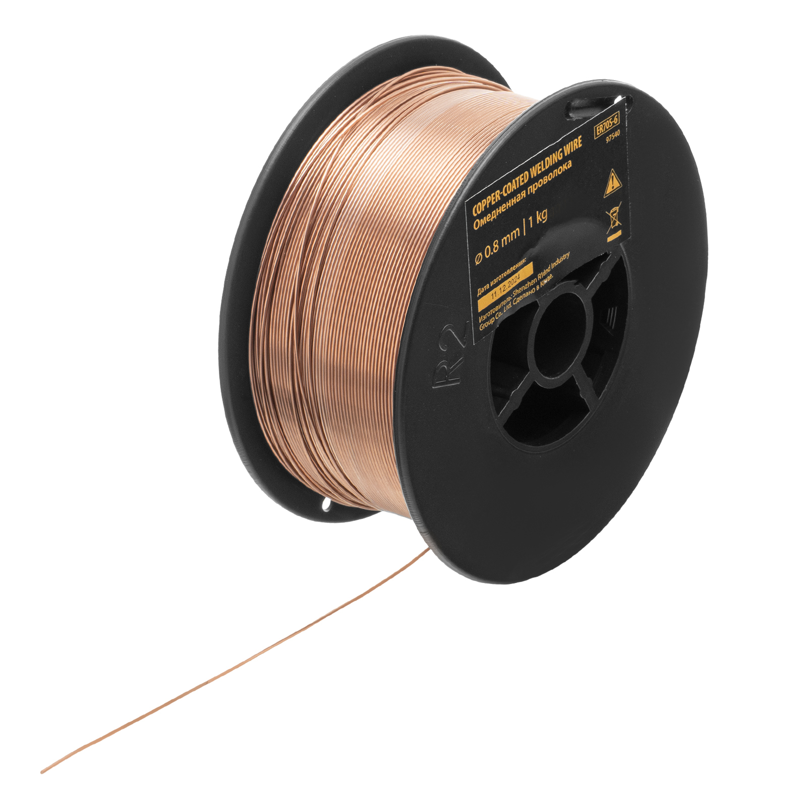 Омедненная проволока Denzel ER70S-6 97540 диаметром 0,8 мм и весом 1 кг, на катушке типа D100, предназначена для полуавтоматической сварки MIG/MAG углеродистых и низколегированных сталей в среде защитных газов. Необходима профессиональным сварщикам, пригодится также частному мастеру.