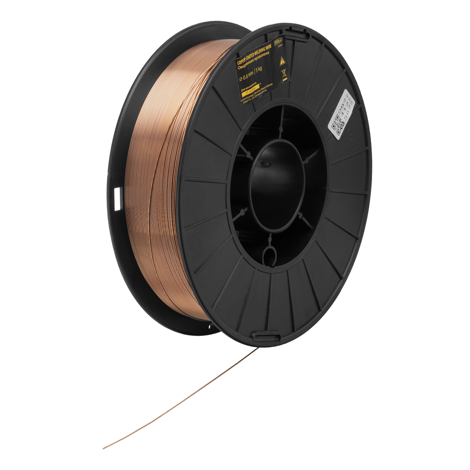Омедненная проволока Denzel ER70S-6 97541 диаметром 0,8 мм и весом 5 кг, на катушке типа D200, предназначена для полуавтоматической сварки MIG/MAG углеродистых и низколегированных сталей в среде защитных газов. Необходима профессиональным сварщикам, пригодится также частному мастеру.