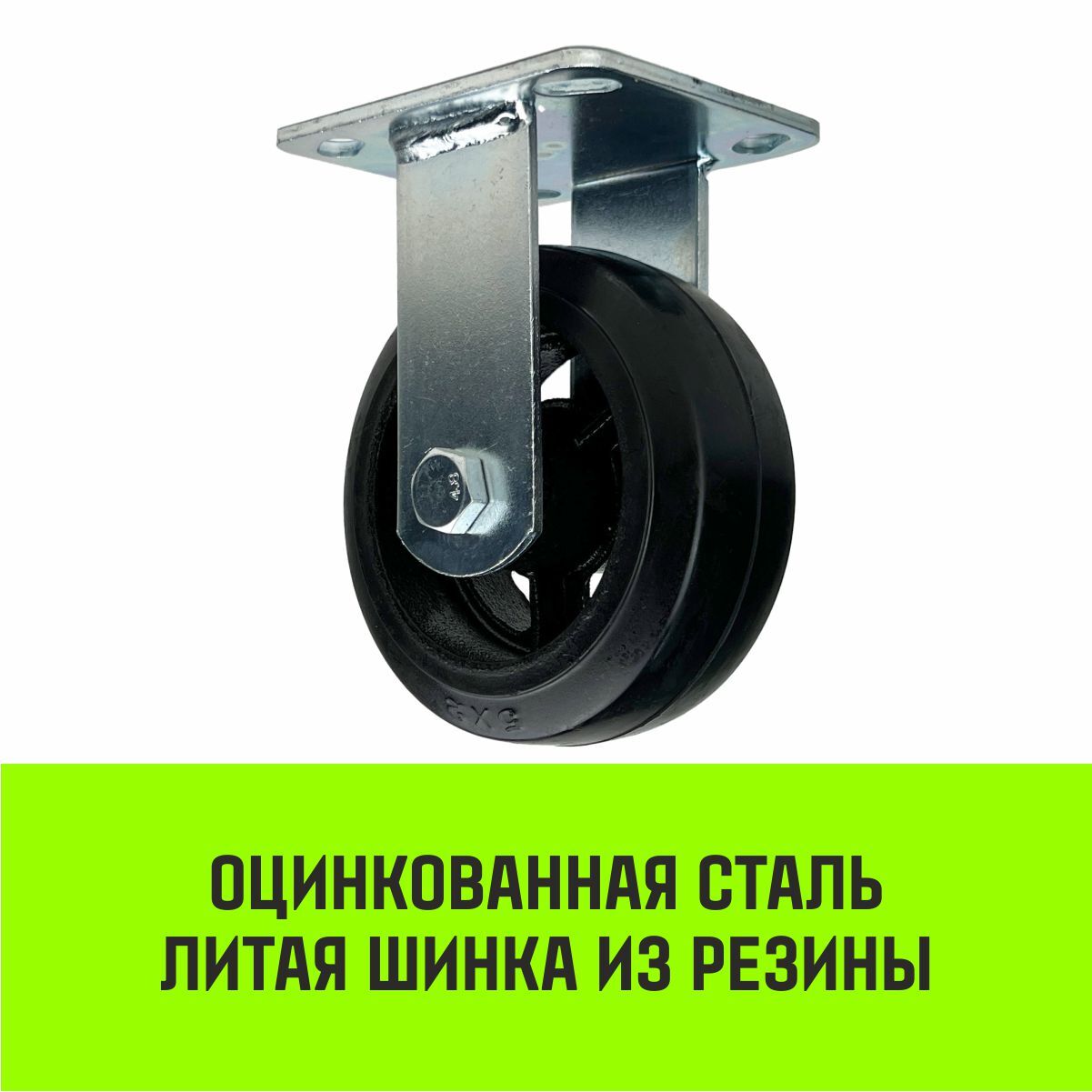 Большегрузное неповоротное колесо с прочным кронштейном из оцинкованной стали устанавливается в строительные леса, вышки-туры, передвижное промышленное и складское оборудование. Обод колеса, шириной 50 мм, отлит из чугуна, шинка изготовлена из литой черной резины. Нагрузка на колесо распределяется равномерно.