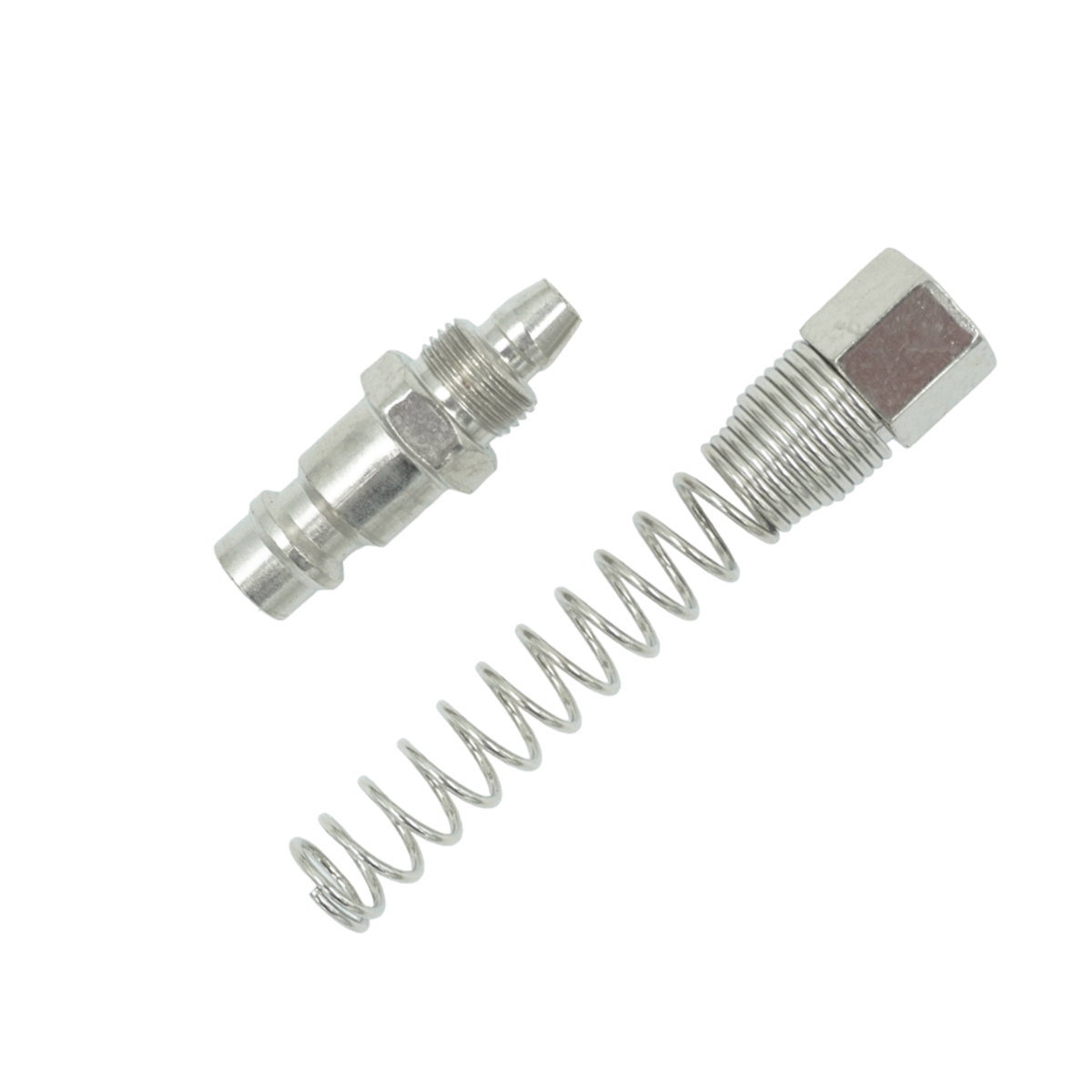 Штуцер быстроразъемного соединения с пружинкой и резьбой 1/4". Предназначен для быстрого и удобного подключения в пневматических системах.