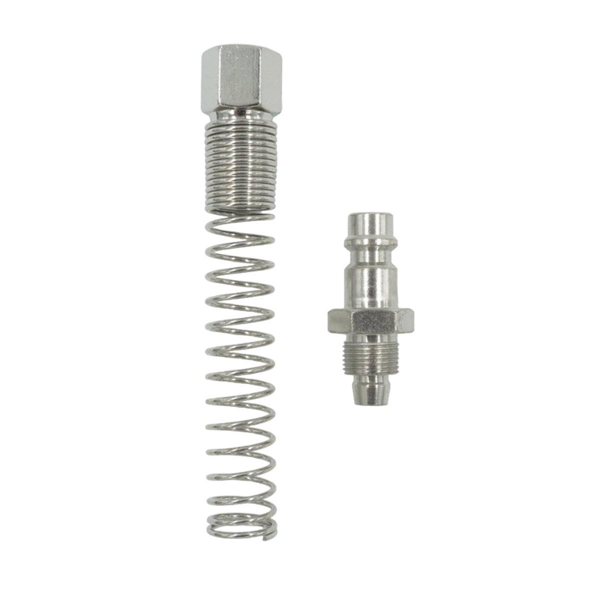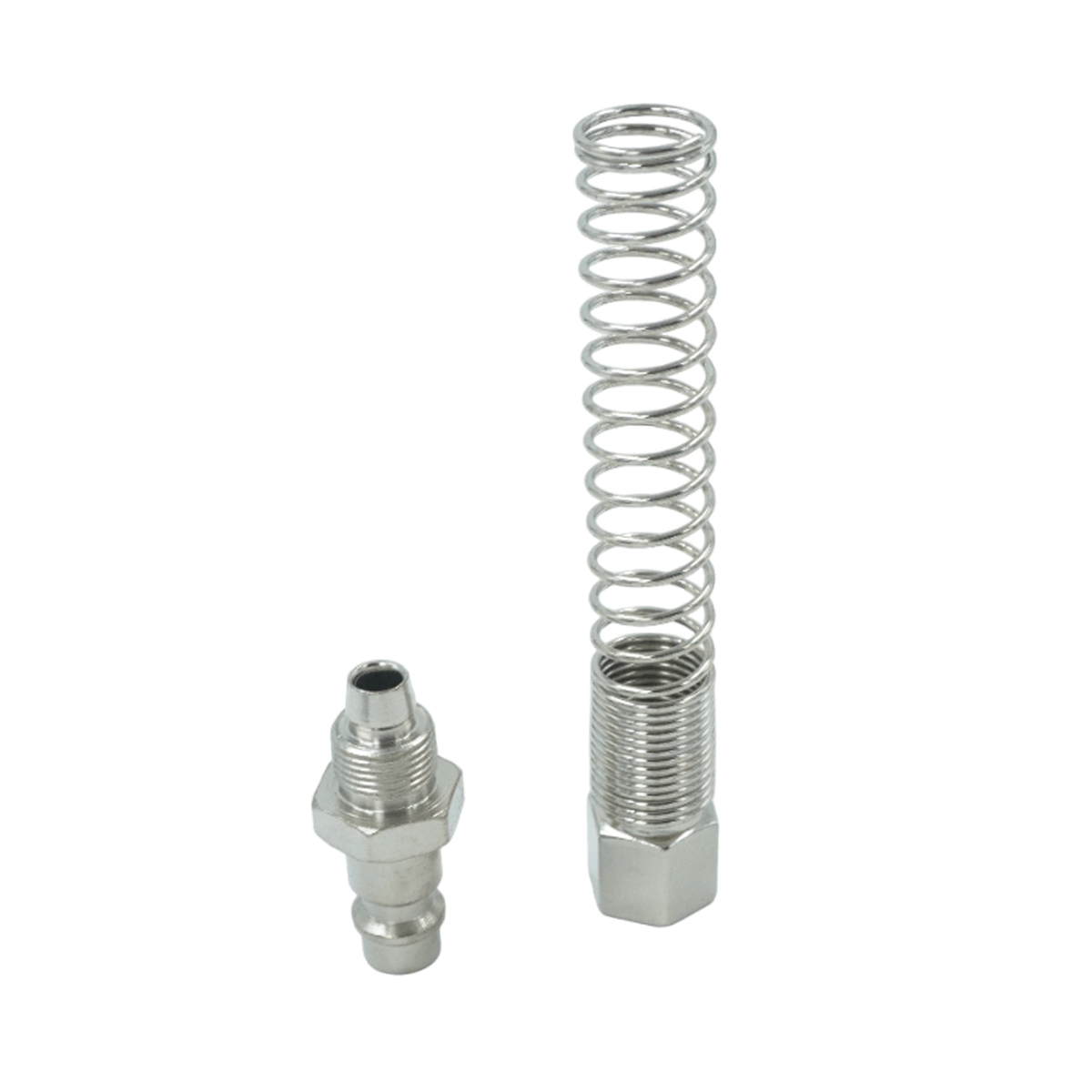 Штуцер быстроразъемного соединения с пружинкой и резьбой 3/8". Предназначен для быстрого и удобного подключения в пневматических системах.