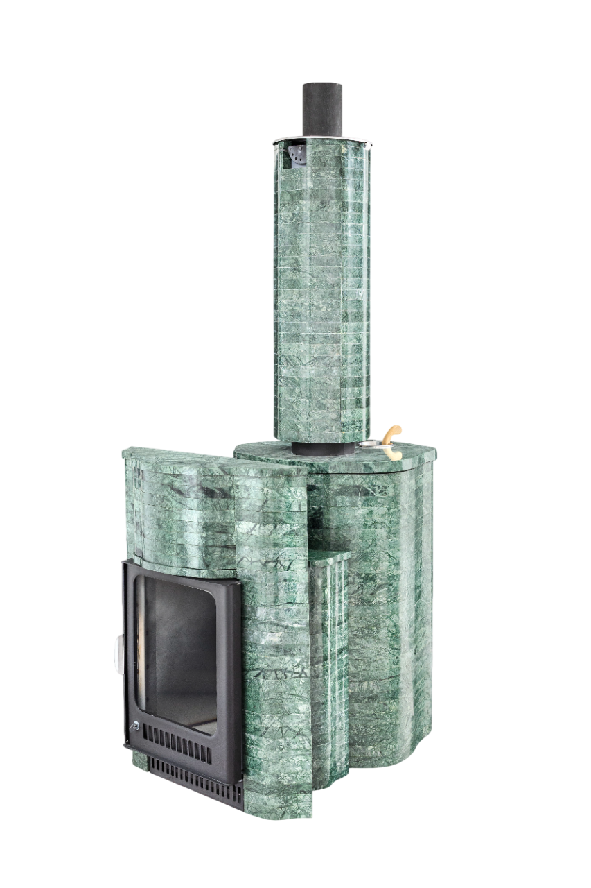 Дровяная печь “Оптима Премиум” - наша самая новая модель! И неспроста: она имеет в 3 раза больше объем камня в облицовке и в 2 раза дольше аккумулирует тепло. А главное - создает идеальные условия для парения в режиме русской бани. Достигается это благодаря продуманной конструкции и большой закрытой каменке (до 100 кг камней). Данная модель предназначена для парных объемом до 28 м3. Топка печи выполнена из жаростойкой нержавеющей стали AISI439. Закладка дров производится из смежного помещения. Дверца снабжена большим стеклом, что создает эффект камина. Доступна к заказу в облицовке по технологии “Призма” в 7 видах натурального камня.