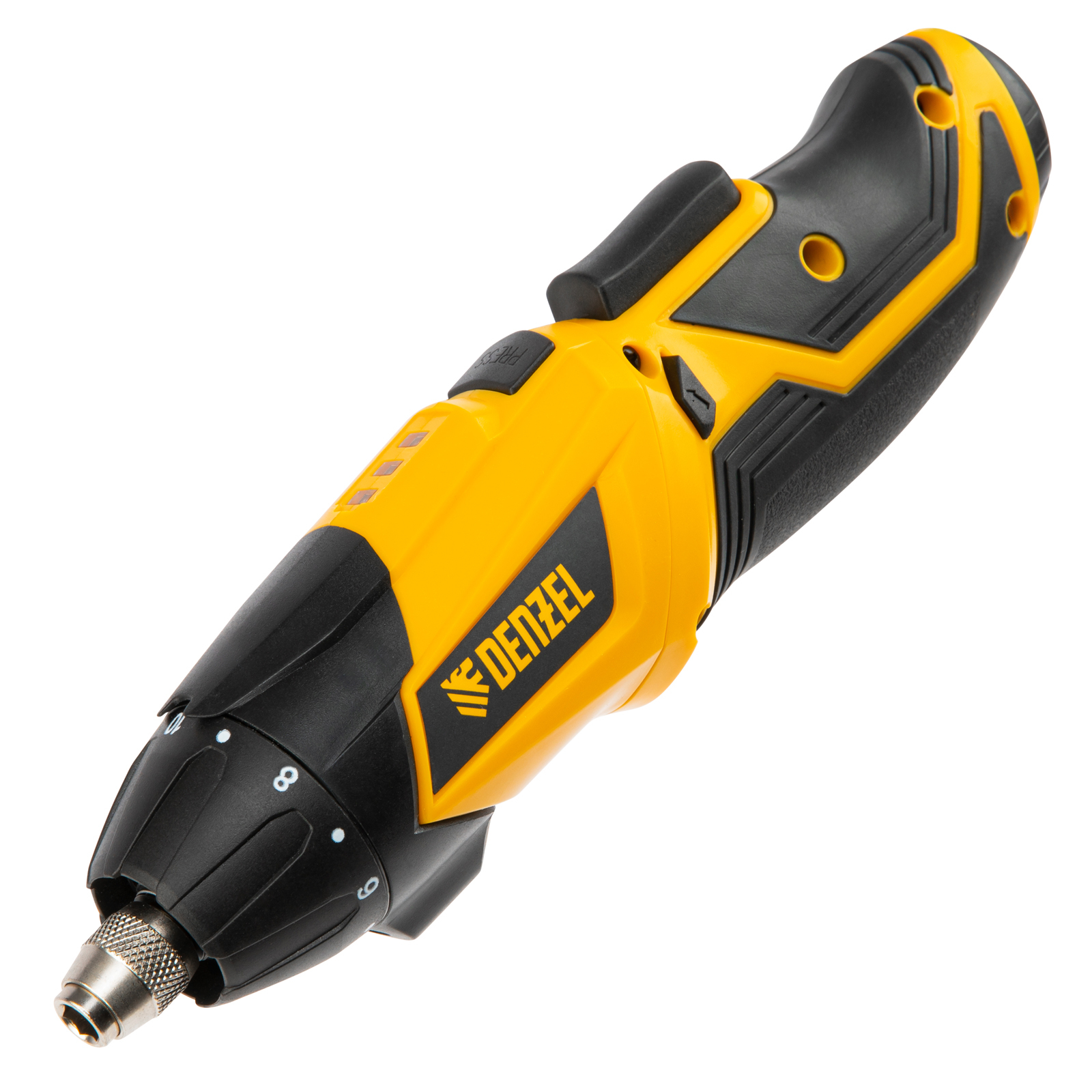 Аккумуляторная отвертка Denzel CSL-3,6-01 26001 с аккумулятором Li-Ion на 3,6 В и 1,3 Ач, в комплекте с аксессуарами, используется для работы с саморезами, шурупами и винтами. Быстро справляется с закручиванием крепежа благодаря максимальному крутящему моменту 4 Нм и частоте вращения 200 об/мин. Встроенный литий-ионный аккумулятор быстро заряжается, характеризуется низким саморазрядом, и отсутствием эффекта памяти, что обеспечивает эффективную работу.