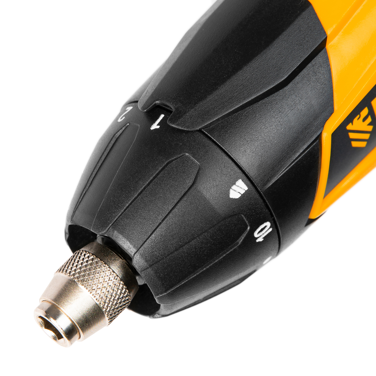 - Продуманная комплектация — к инструменту прилагается набор из 54 бит, что позволяет сразу приступить к работе.