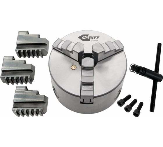 Патрон токарный 3-х кулачковый 7100-0002П К11-100 GRIFF b208058 предназначен для токарных станков. Применяется для зажима заготовок. Корпус изготовлен из чугуна с шаровидным графитом. Класс точности П – повышенный по ГОСТ 1654-86. Патрон оснащен цельными кулачками. Крепится через промежуточный фланец по ГОСТ 3889-80.