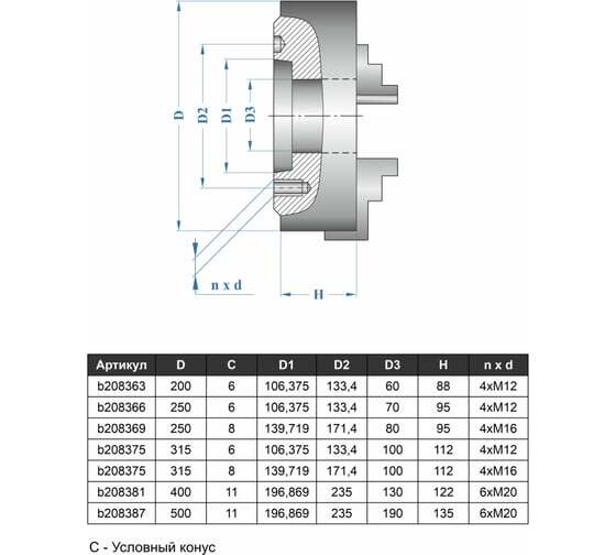 Патрон токарный 3-х кулачковый 7100-0049П К11-500С11 500 мм GRIFF b208387 предназначен для токарных станков. Применяется для зажима заготовок. Корпус выполнен из чугуна с шаровидным графитом. Класс точности П – повышенный по ГОСТ 1654-86. Патрон оснащен цельными кулачками. Крепится на фланцевые концы шпинделей под поворотную шайбу по ГОСТ 12593-93.