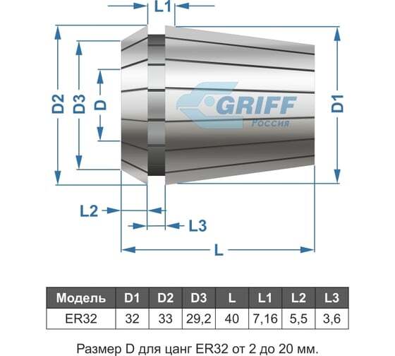 Патрон цанговый MSB3-ER32, хвостовик конус Морзе, DIN228-A, с набором цанг 6 шт. 6-20 мм GRIFF b220223 предназначен для станков без ЧПУ. Применяется для крепления металлорежущего инструмента с помощью цанг. Патрон имеет хвостовик – КМ3. Посадка цанг – ER32. Количество цанг – 6 шт., диаметром от 6 до 20 мм.