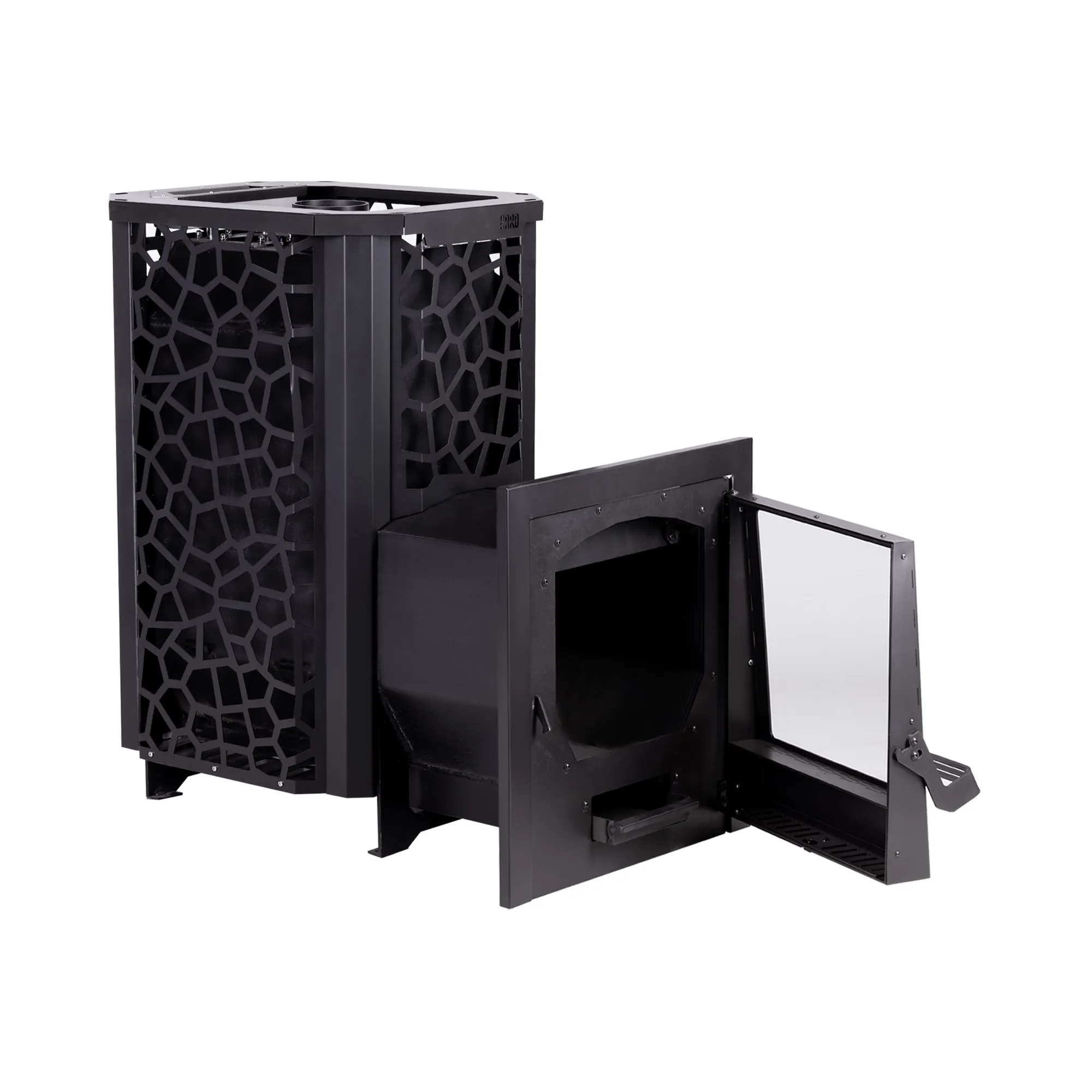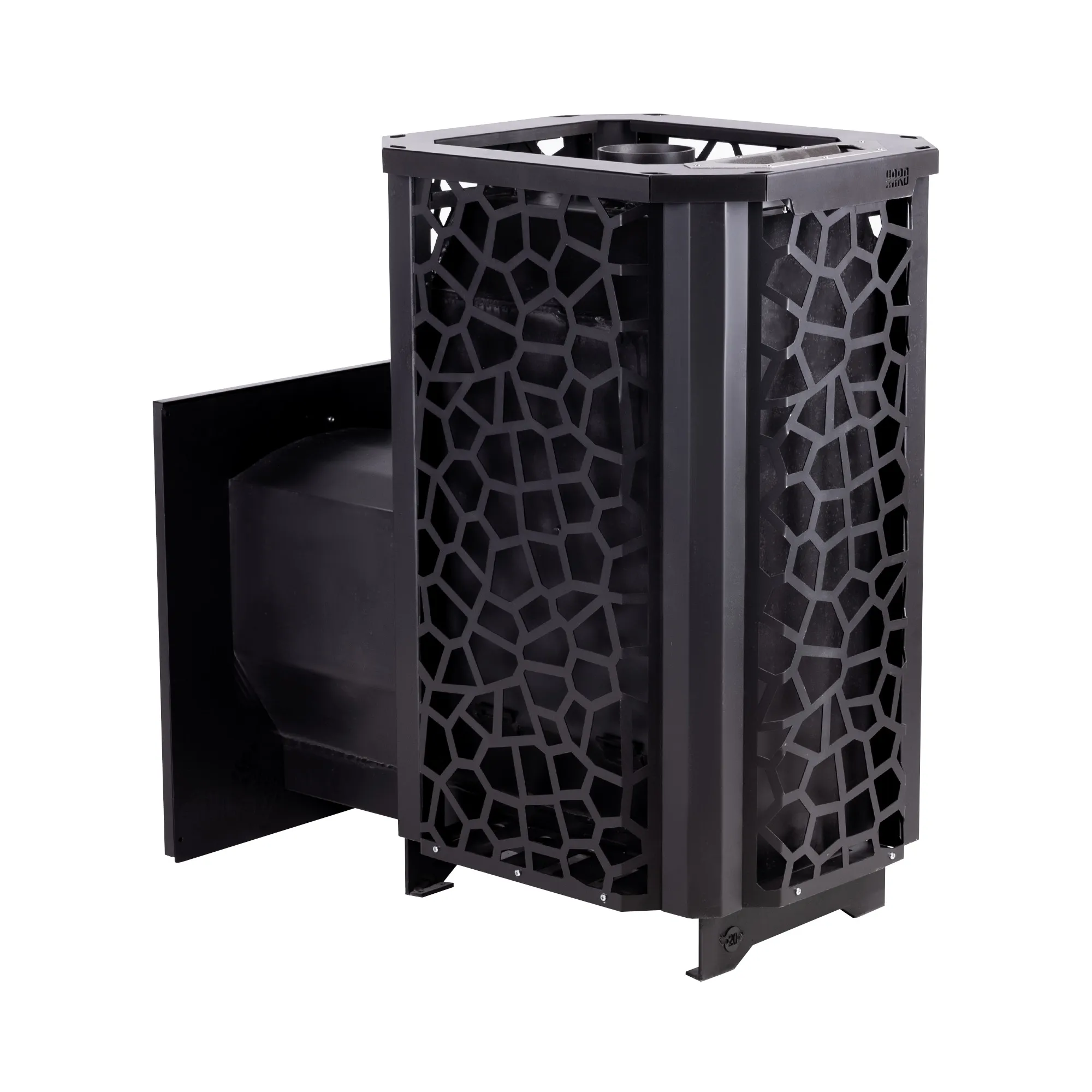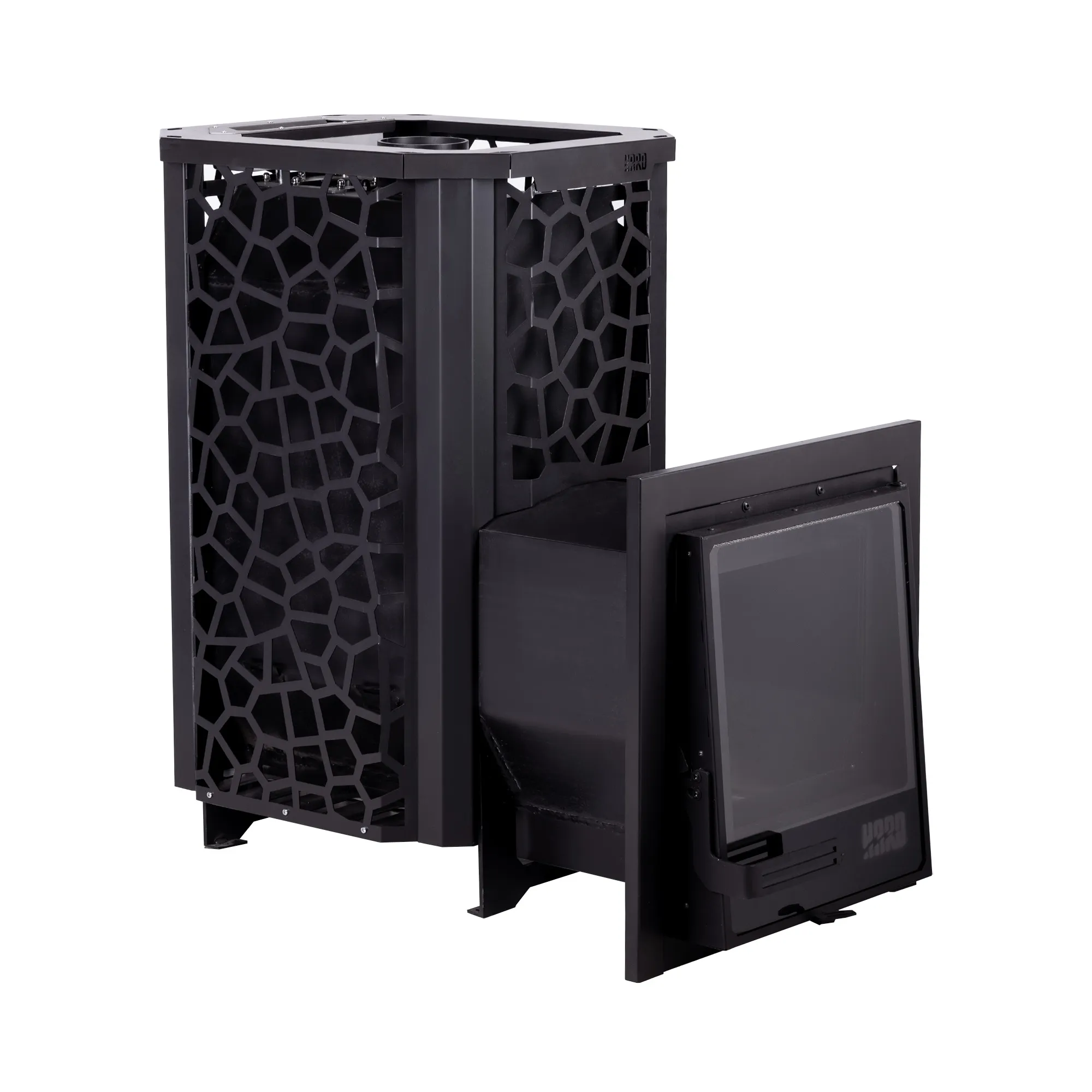 Печь из серии «HARD»® 30L с выносом топки 280 см. Топка проходит через портал в стене бани. Дрова закладываются из смежного c парной помещения. Сетка наружной каменки выполнена в нашем уникальном стиле "Саванна". Этот лаконичный и универсальный дизайн легко впишется в любой интерьер. Печь «HARD»® 30L Панорама отличается надежностью. Топка изготовлена из конструкционной стали 09Г2С толщиной 6 мм. Печь оснащена закрытой каменкой из нержавеющей стали AISI 201, толщиной 3 мм, а так же имеет увеличенную по высоте топку, что позволяет эффективнее прогревать камни в закрытой каменке и парильное помещение. Печь оборудована дверцей с панорамным стеклом. Такая дверца создает визуальную иллюзию камина, что придаёт интерьеру особую атмосферу. Помимо эстетической составляющей, стекло в дверце при работе печи аккумулирует тепло и способствует обогреву помещения.