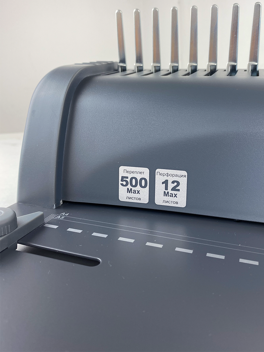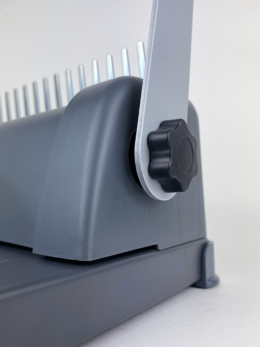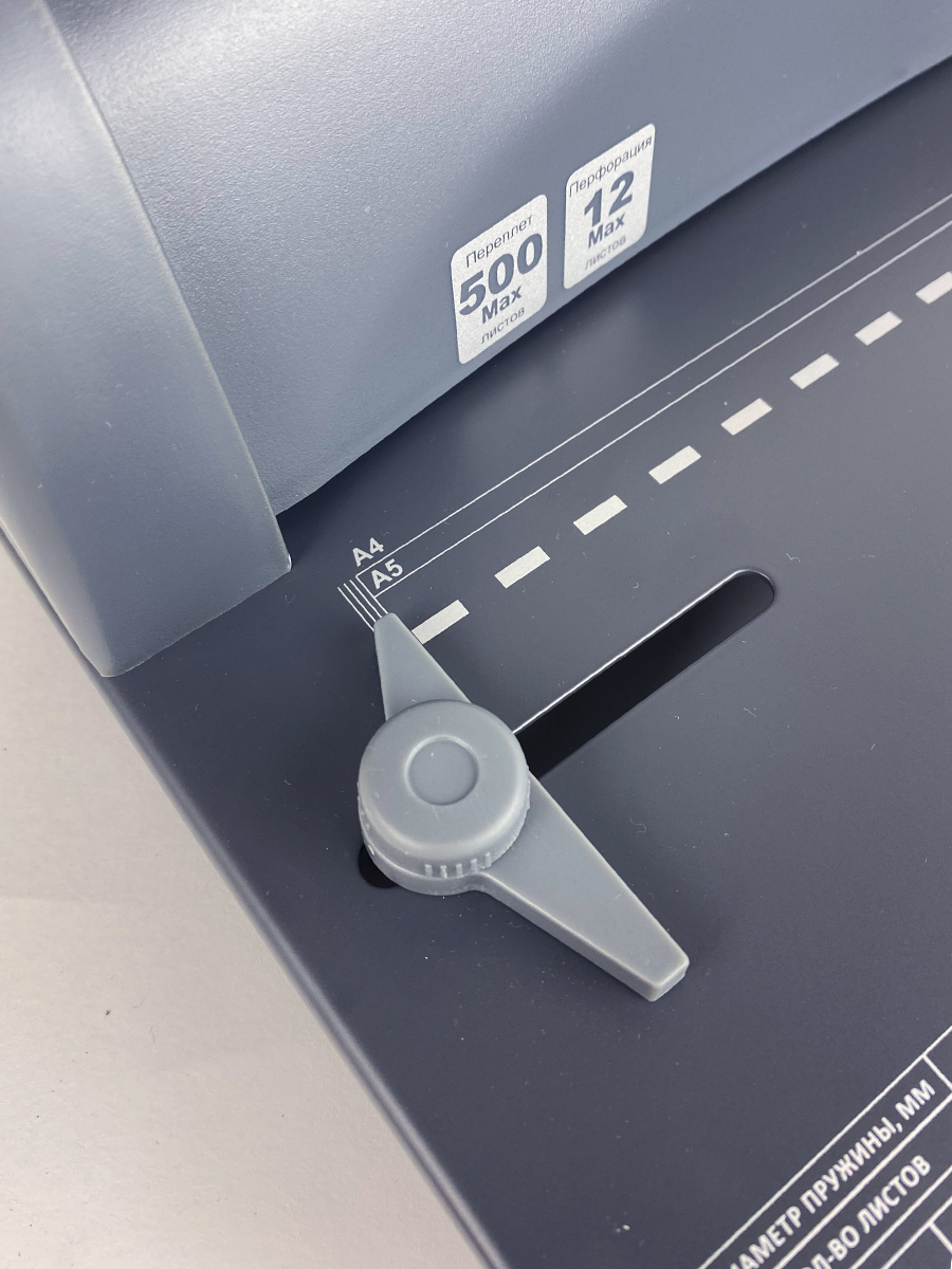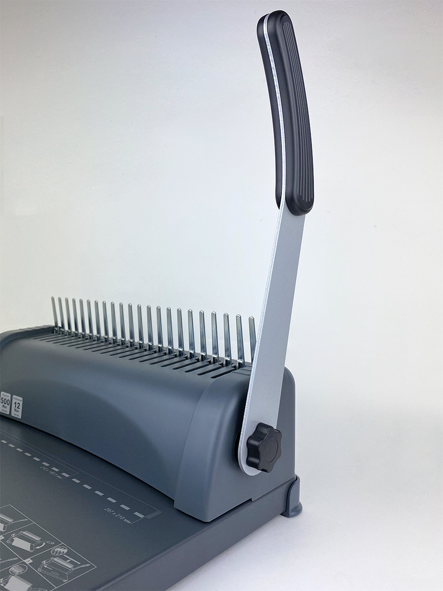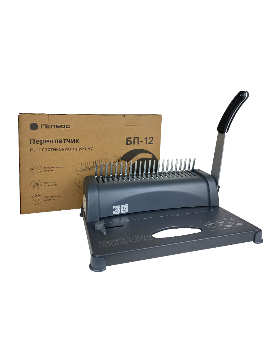 Классический переплетчик на пластиковую пружину подходит для использования в малом и среднем офисе. Позволяет переплетать большие бумажные блоки до 500 листов форматов А4 и меньше. Блок, оформленный на пластиковую пружину можно легко раскрывать на любой градус, исправить и дополнить. Станина переплетчика выполнена из металла, это обеспечивает устойчивость аппарата во время работы. Аппарат можно легко переносить с места на место с помощью ручки на станине. Регулировка глубины перфорации (3 режима), позволяет уверенно переплетать как малые (до 100 листов), так и большие объемы бумажных блоков (до 500 листов). Также для удобства перфорации листов имеется регулируемый упор для бумаги формата А4 и меньше.