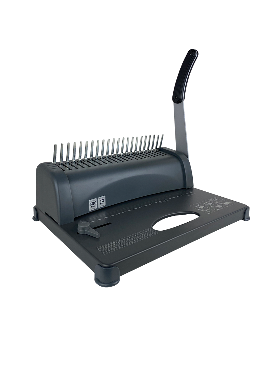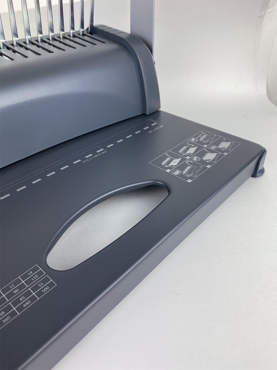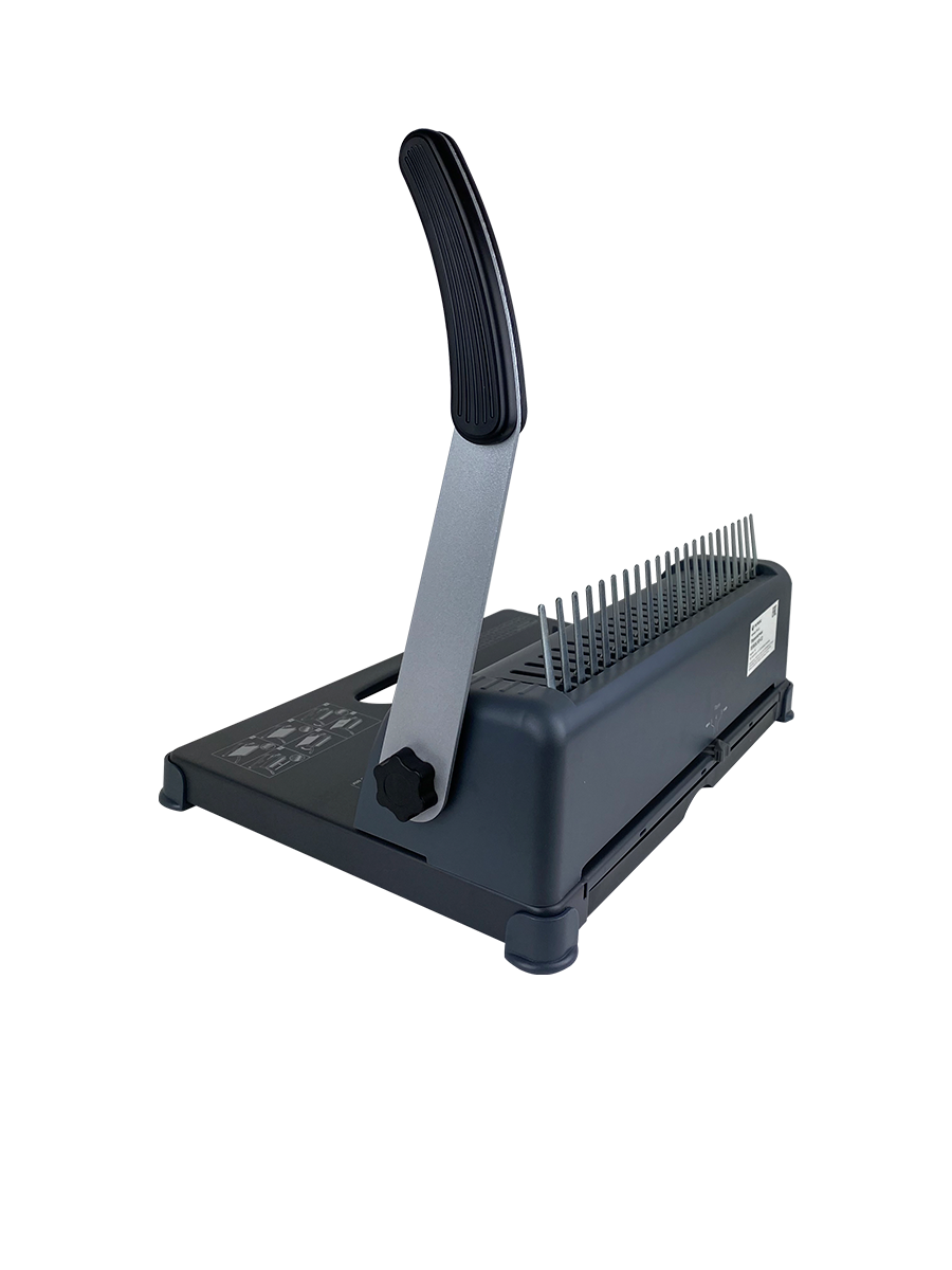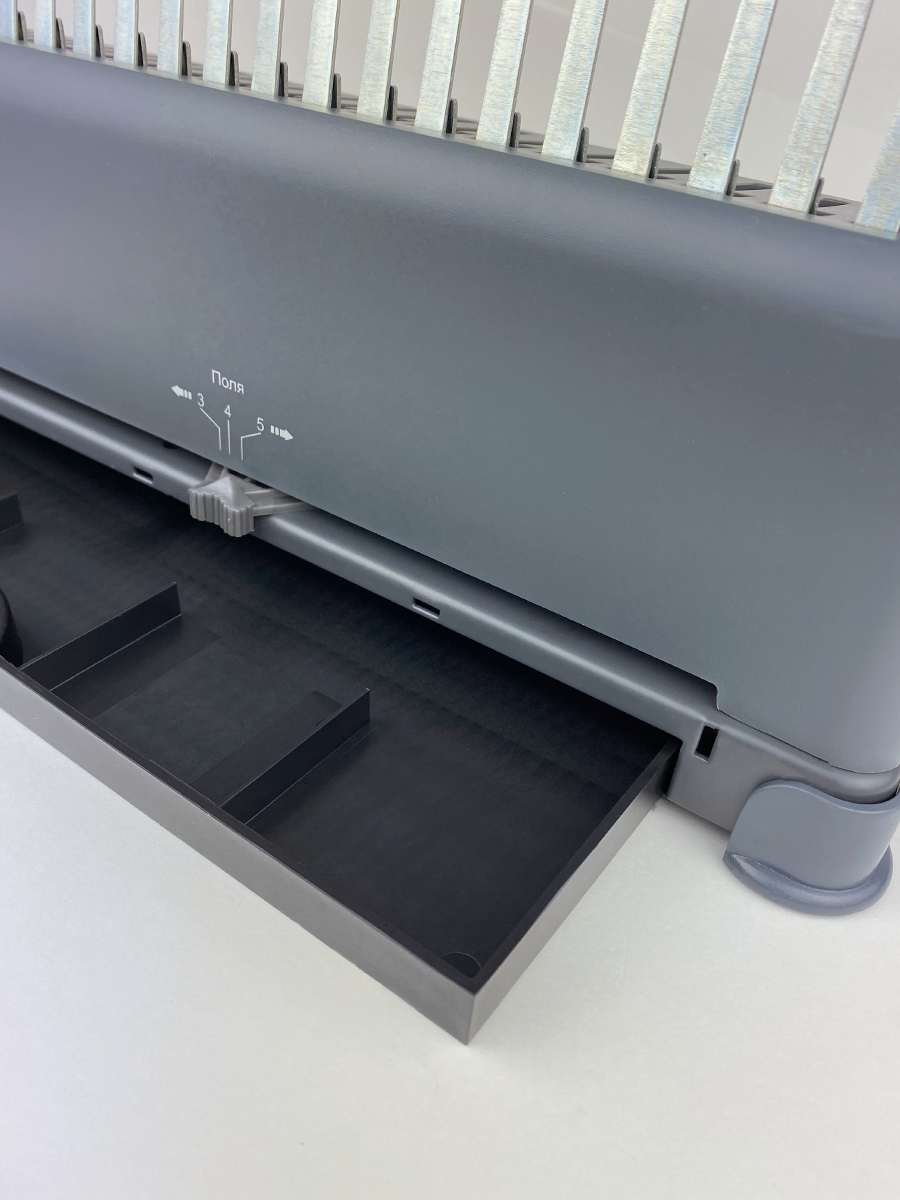 Классический переплетчик на пластиковую пружину подходит для использования в малом и среднем офисе. Позволяет переплетать большие бумажные блоки до 500 листов форматов А4 и меньше. Блок, оформленный на пластиковую пружину можно легко раскрывать на любой градус, исправить и дополнить. Станина переплетчика выполнена из металла, это обеспечивает устойчивость аппарата во время работы. Аппарат можно легко переносить с места на место с помощью ручки на станине. Регулировка глубины перфорации (3 режима), позволяет уверенно переплетать как малые (до 100 листов), так и большие объемы бумажных блоков (до 500 листов). Также для удобства перфорации листов имеется регулируемый упор для бумаги формата А4 и меньше.