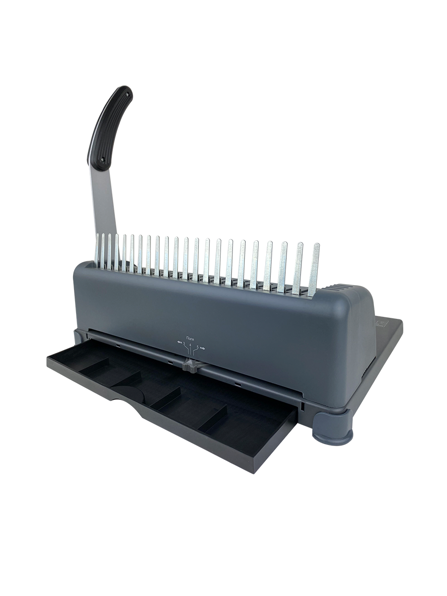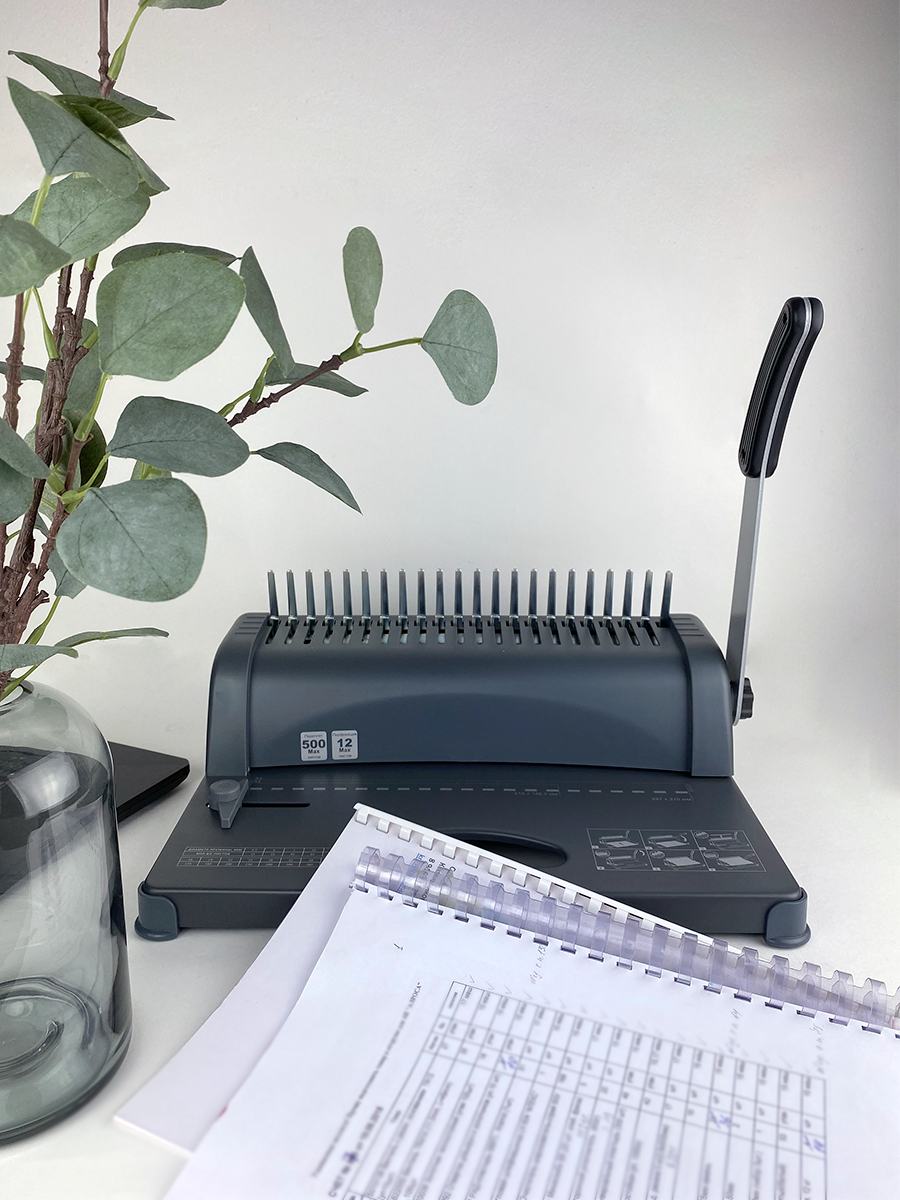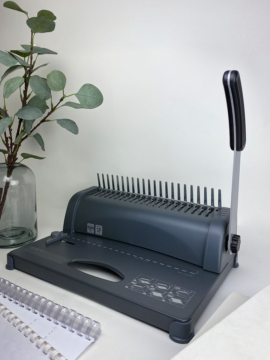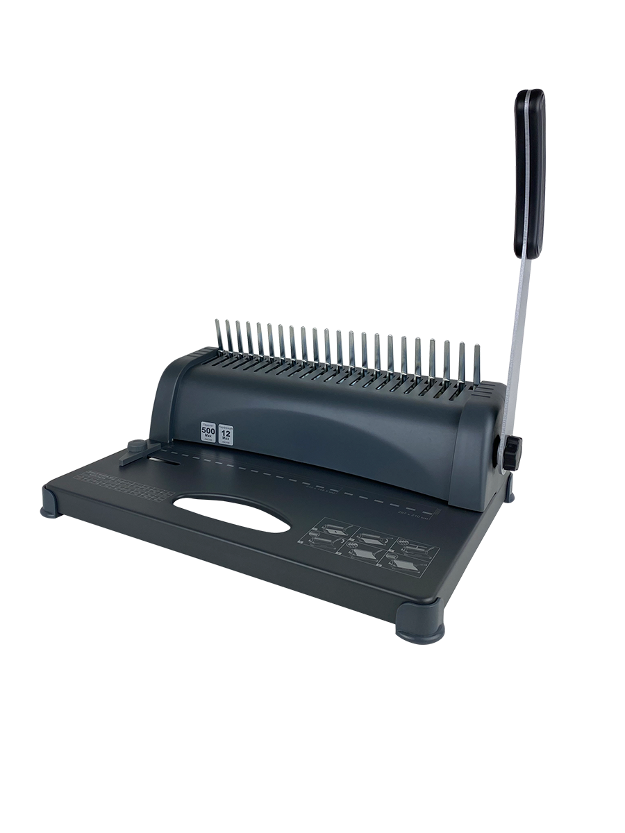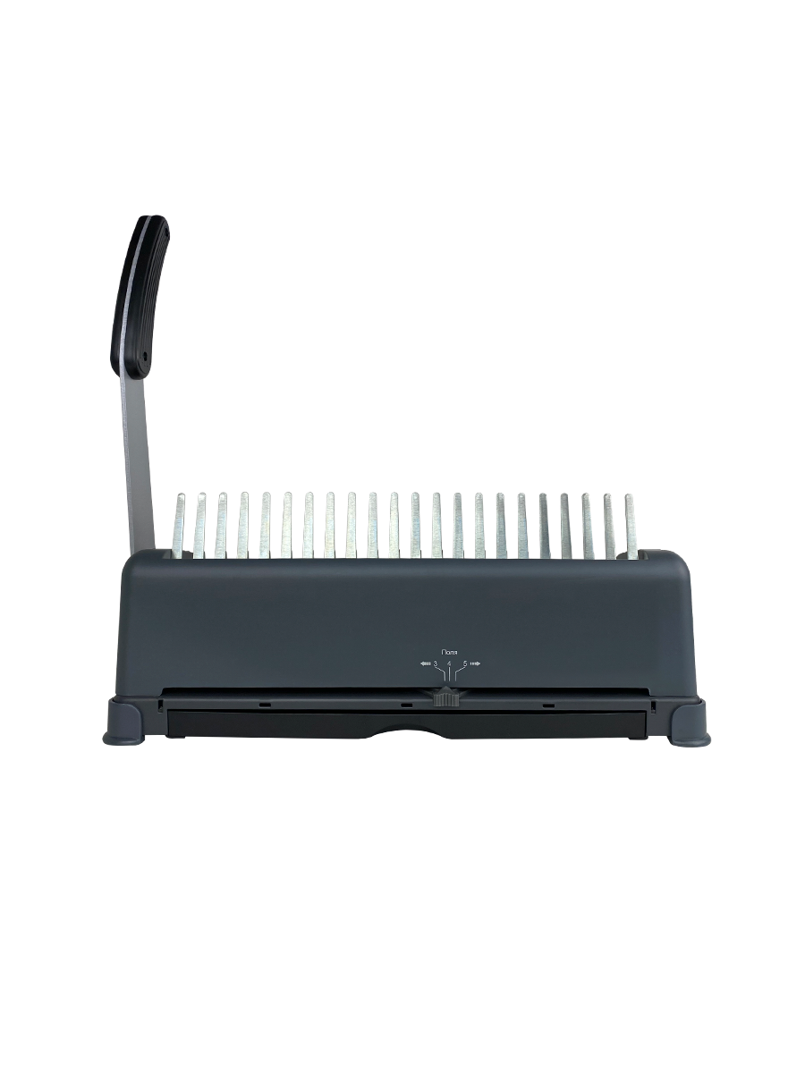 Классический переплетчик на пластиковую пружину подходит для использования в малом и среднем офисе. Позволяет переплетать большие бумажные блоки до 500 листов форматов А4 и меньше. Блок, оформленный на пластиковую пружину можно легко раскрывать на любой градус, исправить и дополнить. Станина переплетчика выполнена из металла, это обеспечивает устойчивость аппарата во время работы. Аппарат можно легко переносить с места на место с помощью ручки на станине. Регулировка глубины перфорации (3 режима), позволяет уверенно переплетать как малые (до 100 листов), так и большие объемы бумажных блоков (до 500 листов). Также для удобства перфорации листов имеется регулируемый упор для бумаги формата А4 и меньше.