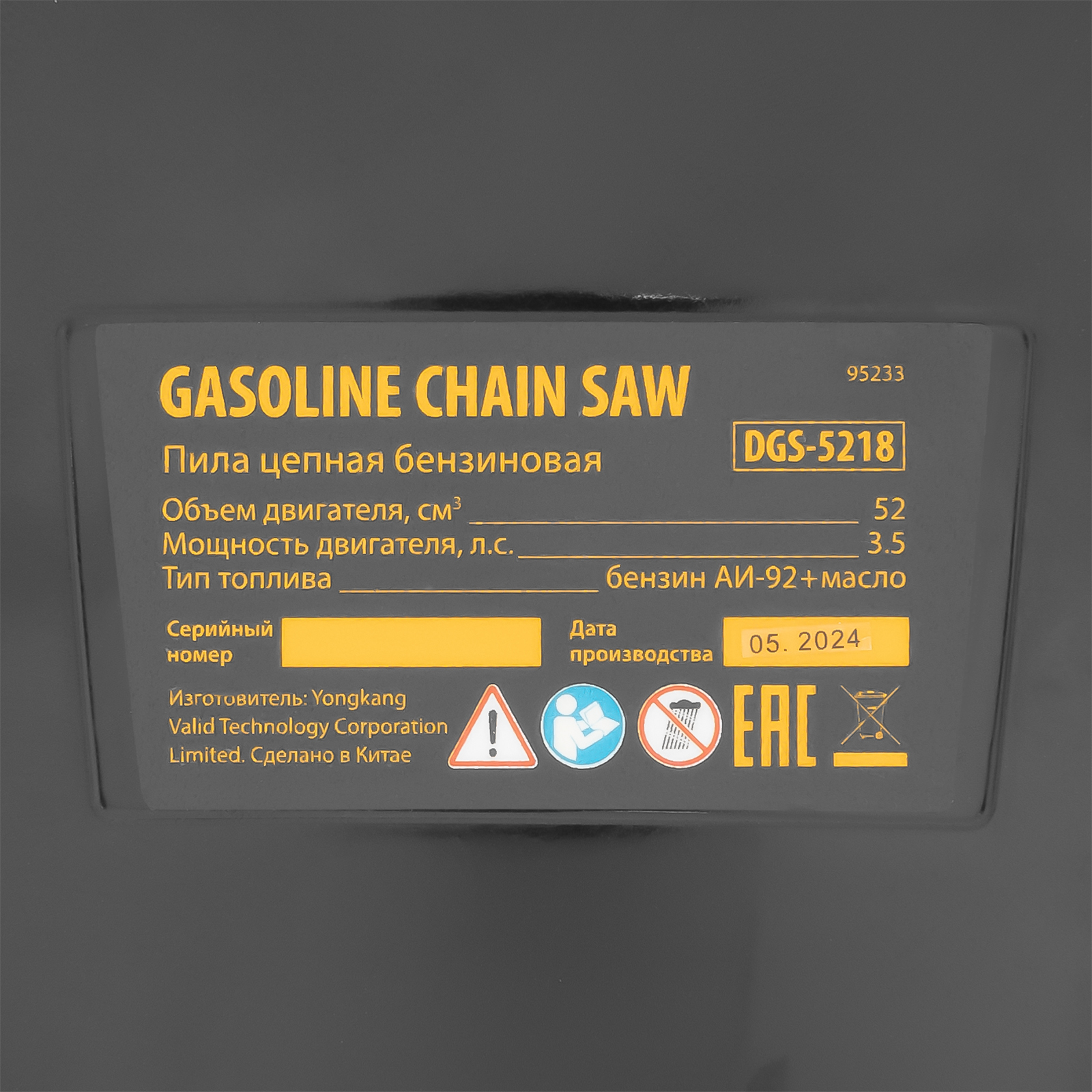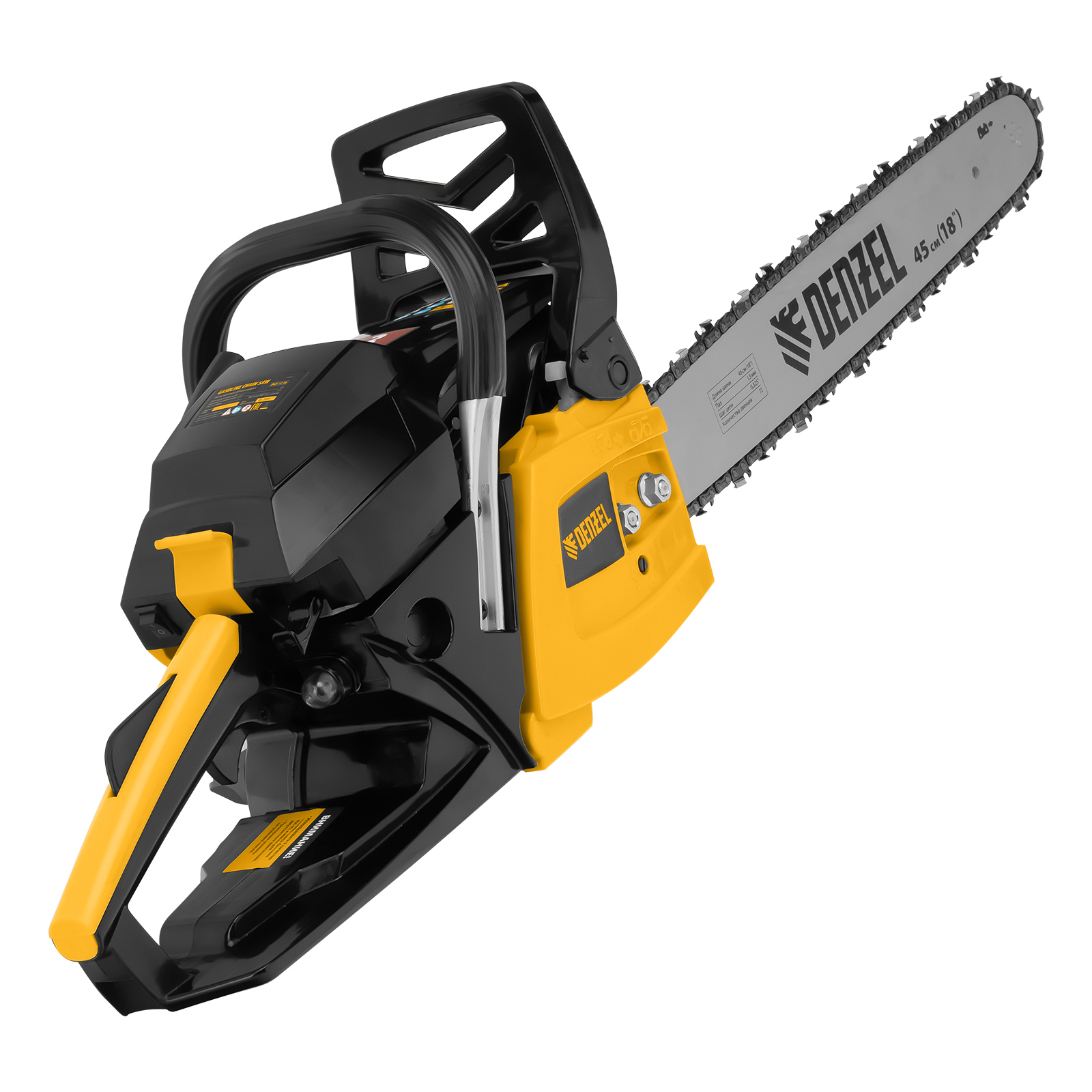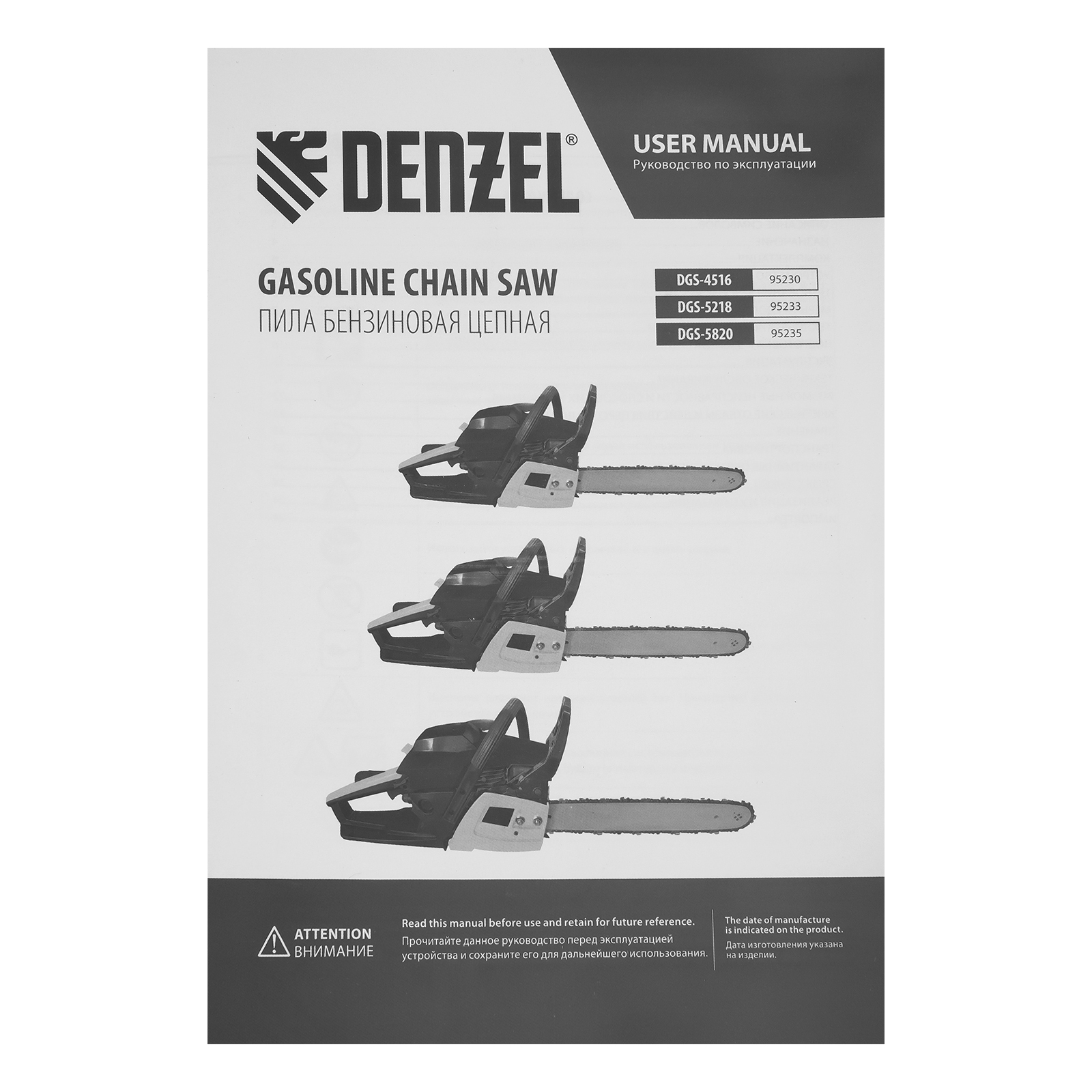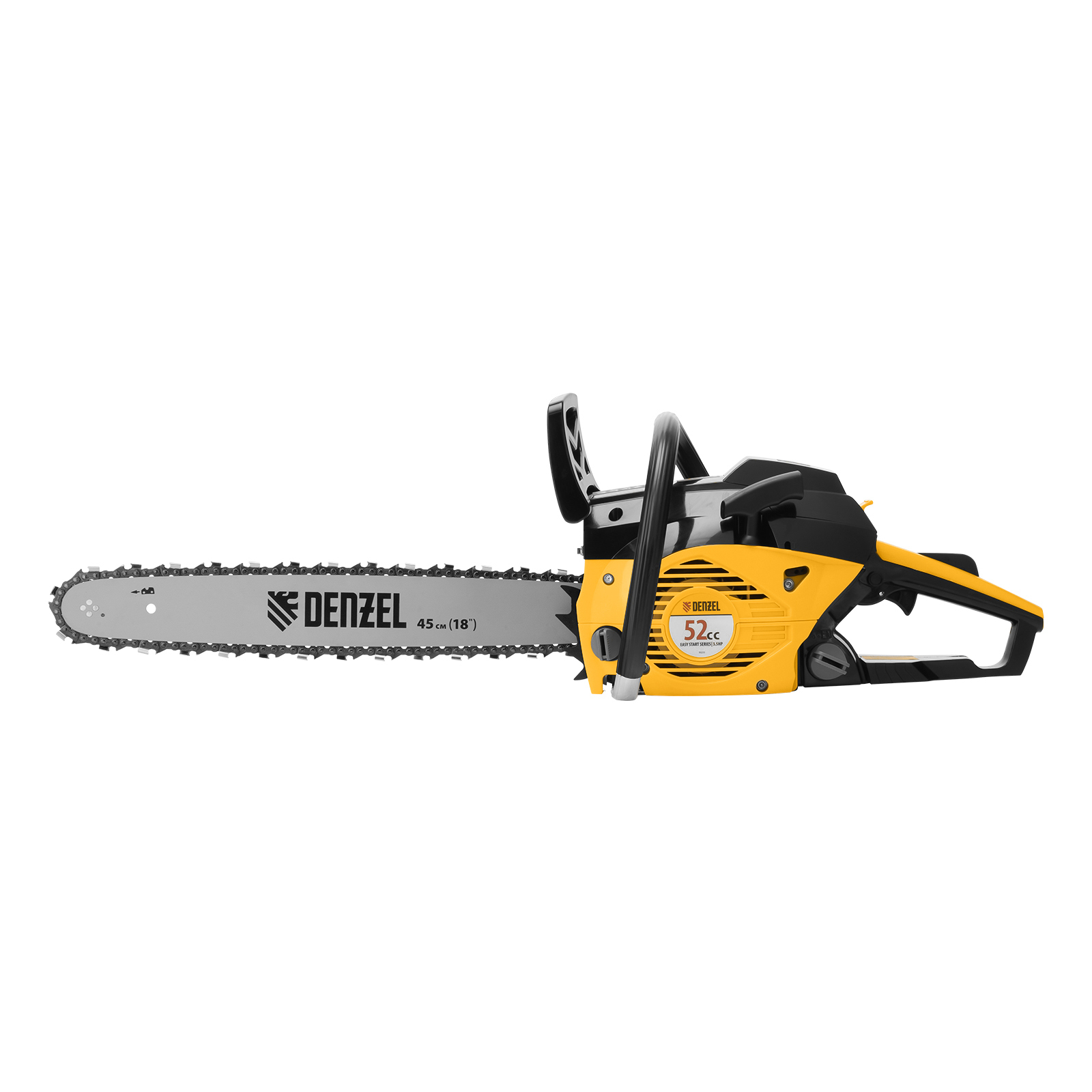 Пила цепная бензиновая Denzel DGS-5218 95233 с двигателем объемом 52 см3 и мощностью 3,5 л.с. поставляется с шиной длиной 45 см и цепью с 72 звеньями (шаг 0,325″, паз 1,5 мм). Инструмент предназначен для заготовки дров, обрезки ветвей и сучьев в саду, распила древесины твердых и мягких пород. Пила выдерживает интенсивные нагрузки, используется во время строительных и ремонтных работ, будет полезна на дачном участке.