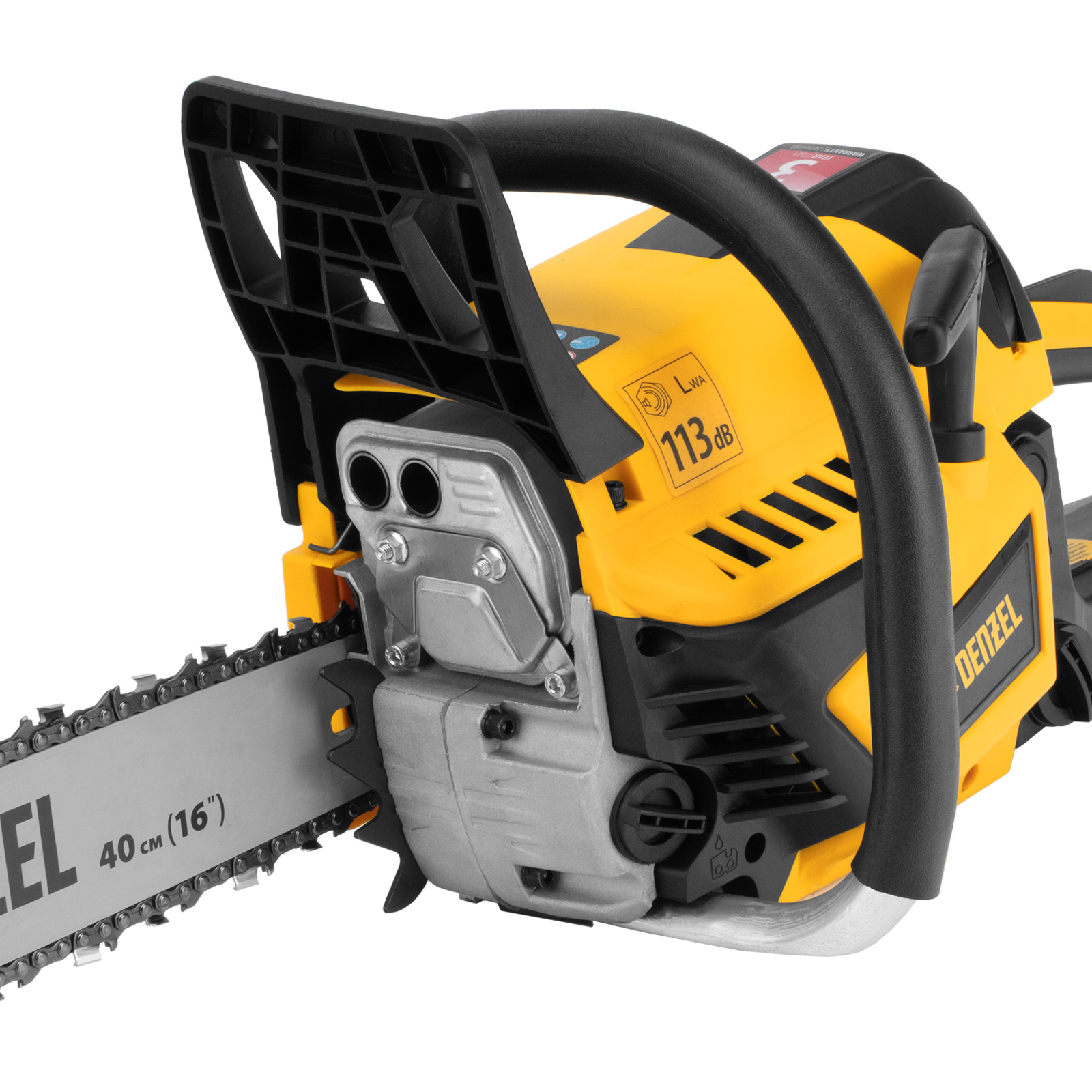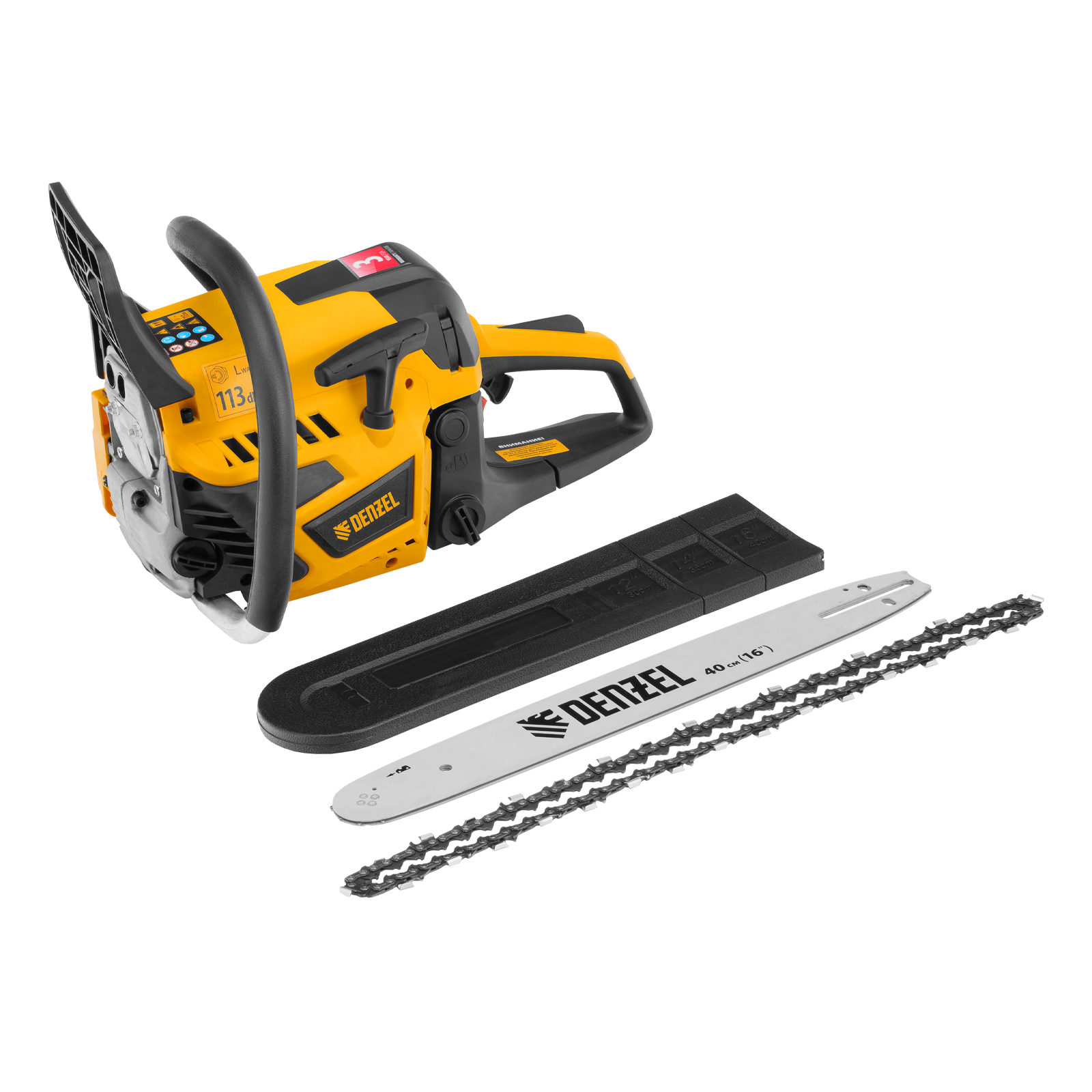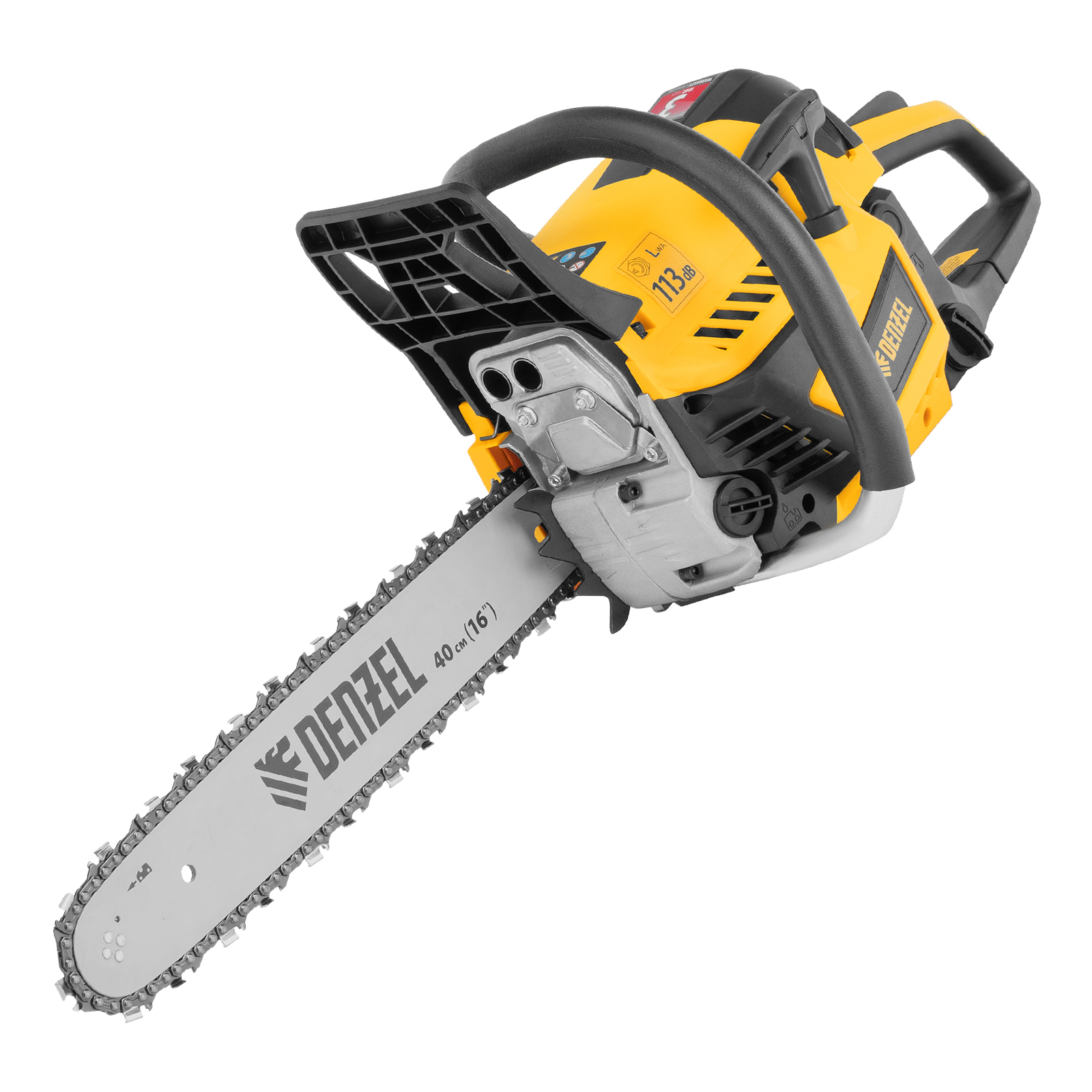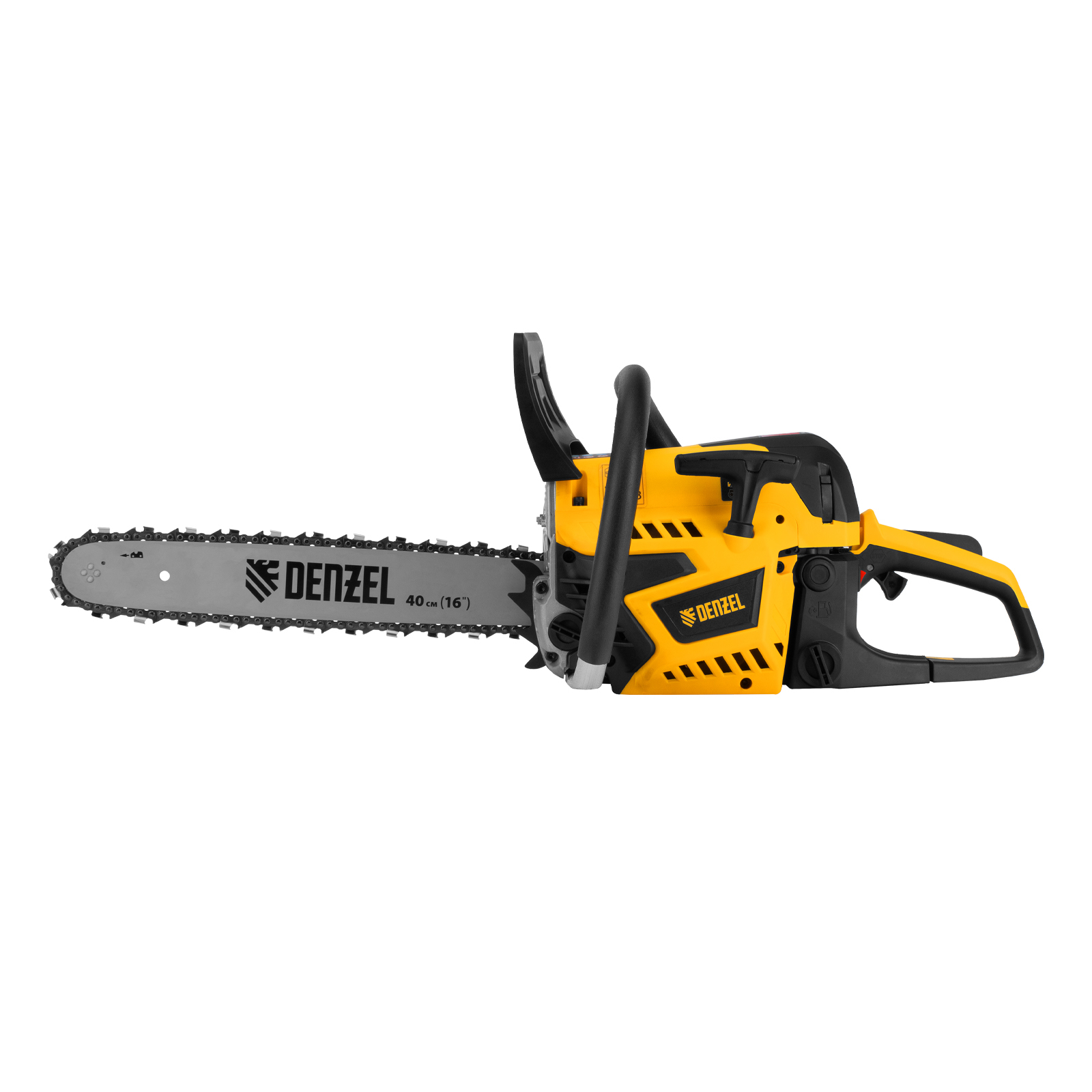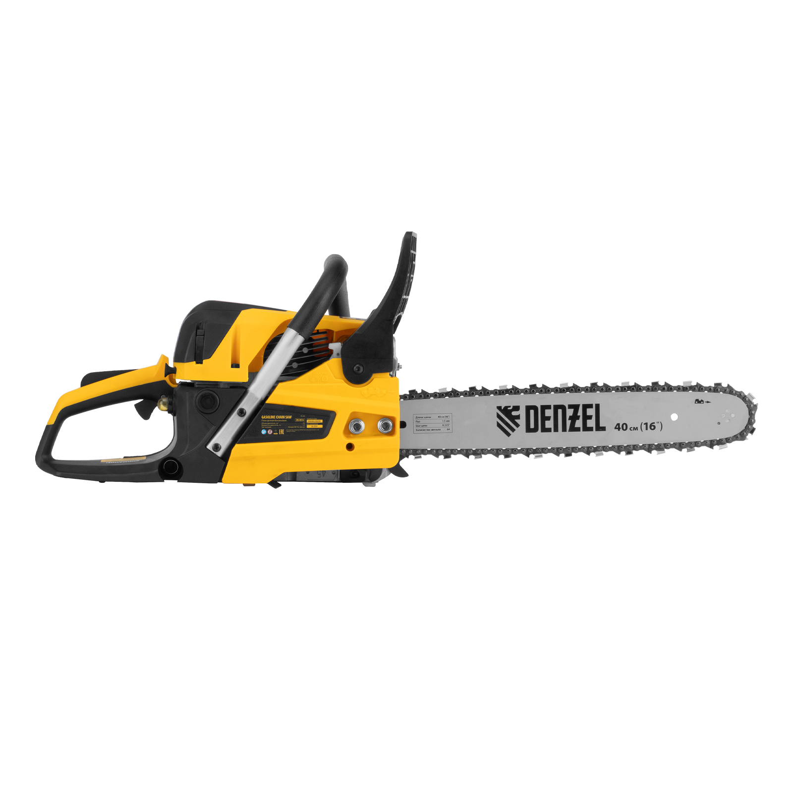 Пила цепная бензиновая Denzel DS-4516 95236 мощностью 2,5 л.с. оснащена двигателем объемом 45 см3 и поставляется с высокопроизводительной пильной гарнитурой: шиной длиной 40 см, цепью с 64 звеньями шагом 0,325" и пазом 1,5 мм. Используется для заготовки дров, распиловки древесины, при проведении ремонтных, строительных и садовых работ. Мощный и экономичный двухтактный двигатель позволяет эффективно и быстро решать поставленные задачи.