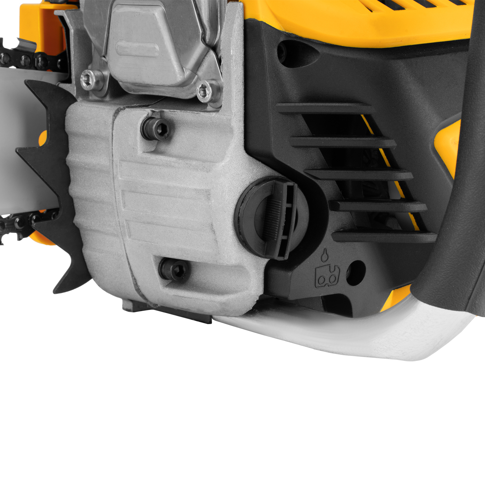 - Система автоматической смазки цепи — масло подается к пильной гарнитуре своевременно и в необходимом количестве, что позволяет уменьшить ее изнашивание и препятствует накапливанию смолы.