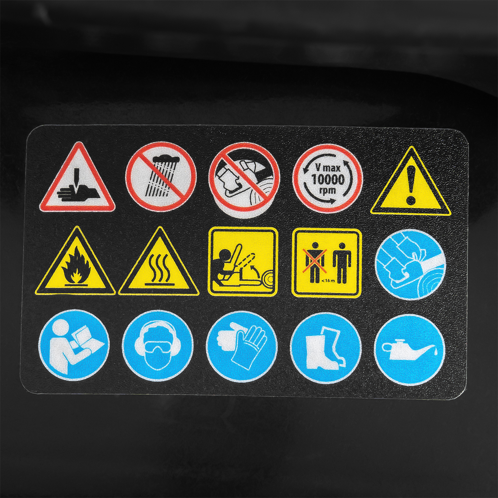 - Безопасная эксплуатация — функция блокировки газа предотвращает случайный запуск, тормоз цепи снижает риск травмирования при отскоке пилы.