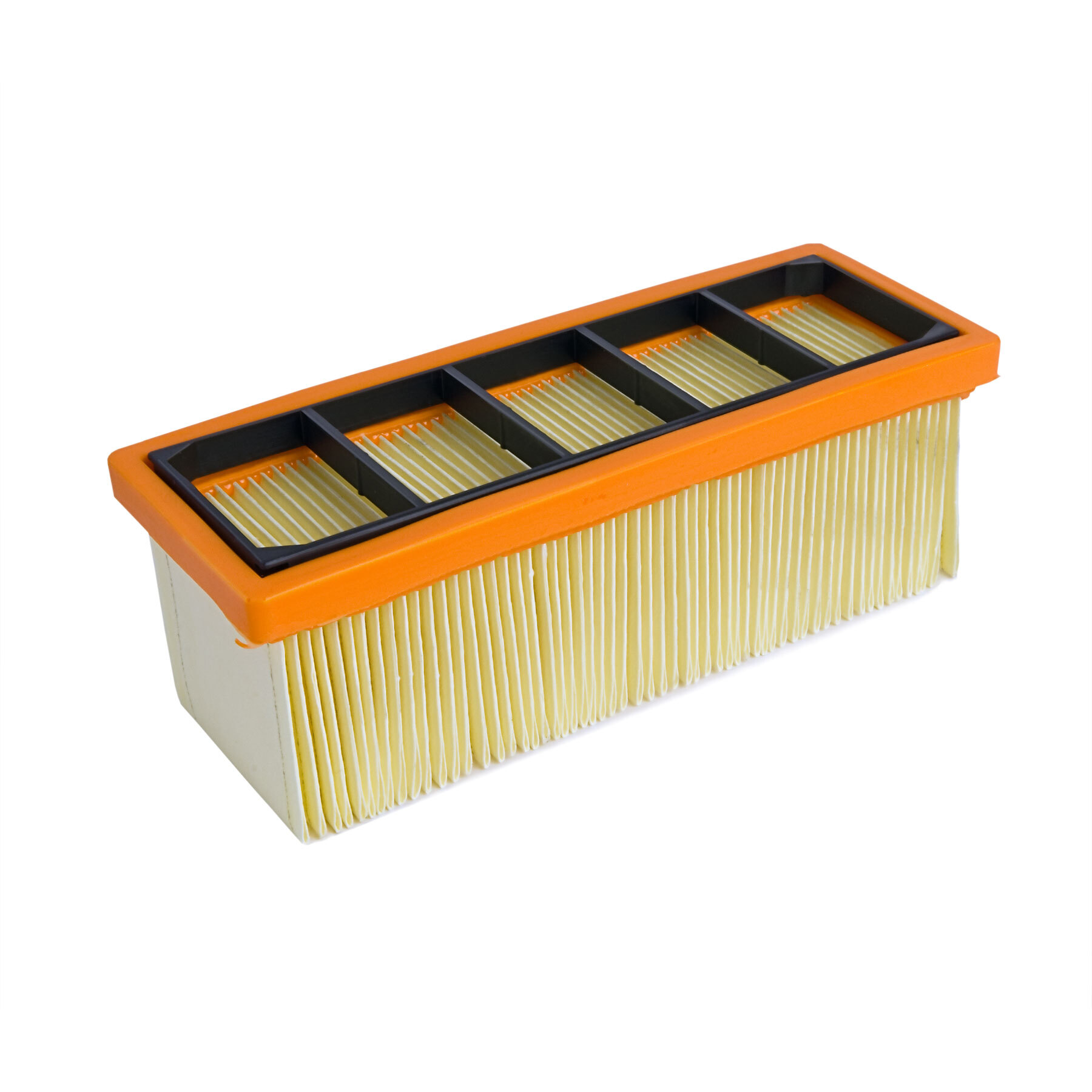 Фильтр пыли плоский складчатый, бумажный. Предназначен для моющих пылесосов Karcher серии SE 2001 и SE 3001, SE 5.100, SE 6.100, для хозяйственных пылесосов A 2701, A 2731 PT, K 2501, A 2801, а также профессиональных моделей NT 181.