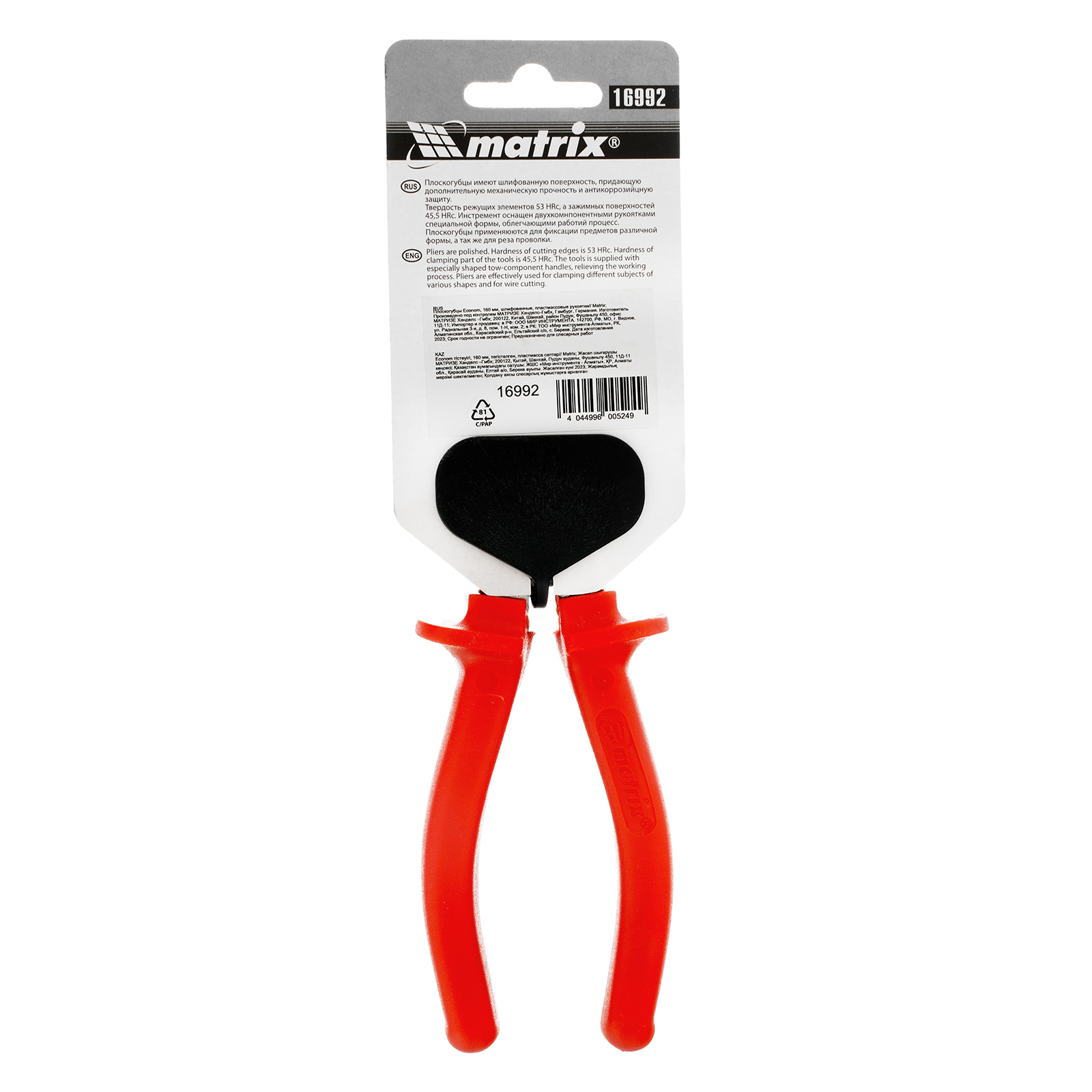 Шлифованные плоскогубцы Matrix Econom 16992 длиной 160 мм, с пластмассовыми рукоятками, необходимы для выполнения слесарных, столярных и монтажных работ. Они удерживают плоские и круглые предметы, а также перекусывают проволоку и провода. Губки с зазубренной поверхностью надежно фиксируют детали. Инструмент используется во время строительства, ремонта, обслуживания автомобилей, а также полезен в быту.