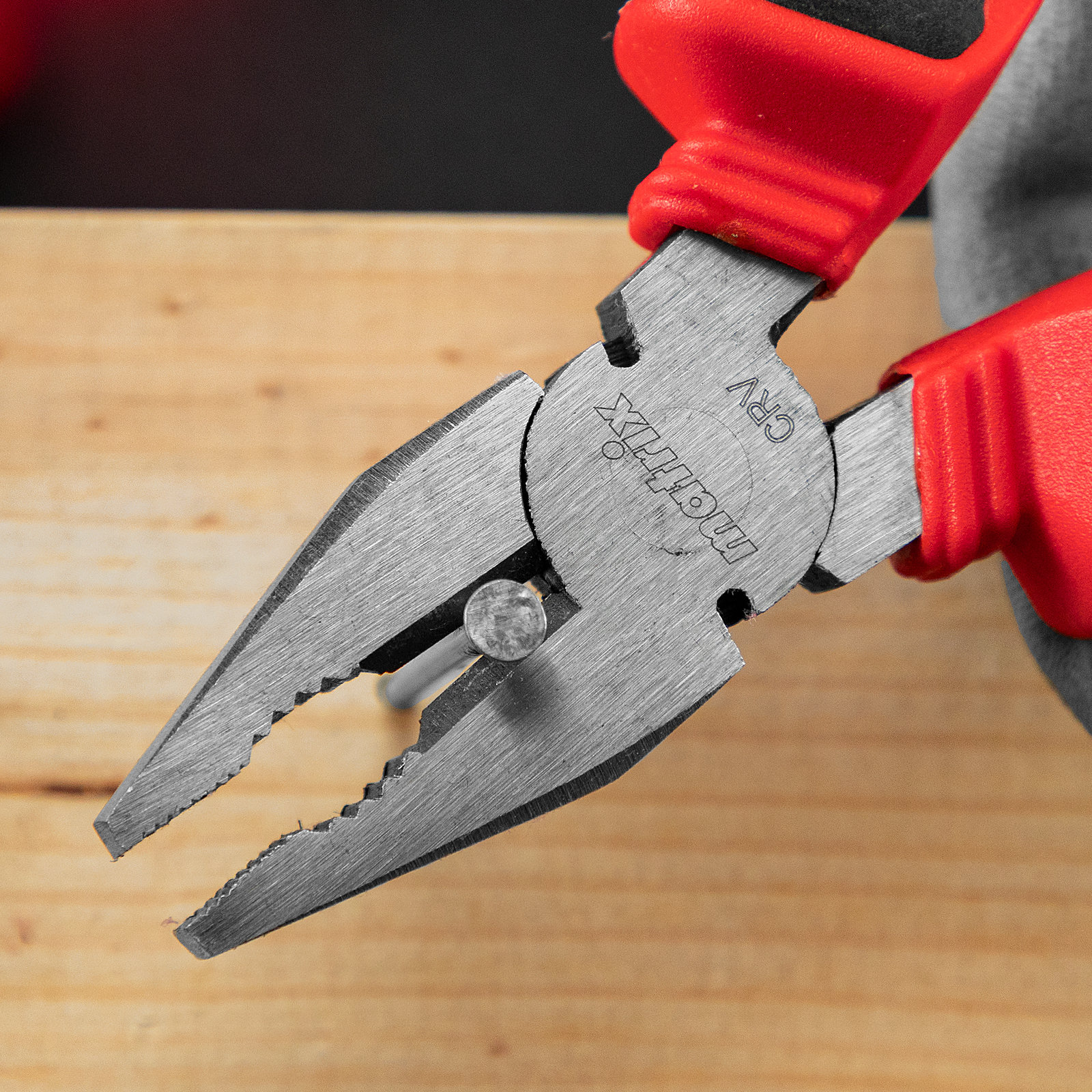 Комбинированные плоскогубцы Matrix 17090 длиной 160 мм, из хромованадиевой стали, с двухкомпонентными рукоятками, предназначены для захвата, сгибания и удержания деталей различной формы. Режущие части позволяют перерезать провода и стальную проволоку диаметром до 1,6 мм. Инструмент пригодится слесарю и монтажнику для проведения работ по наладке оборудования, монтажу конструкций, а также для решения других задач.
