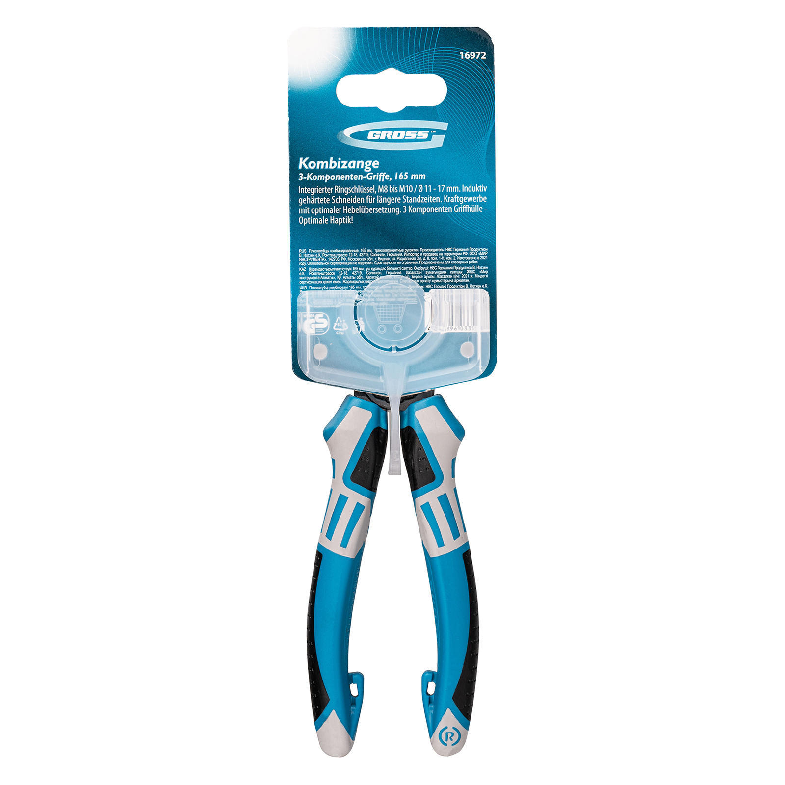 Комбинированные плоскогубцы Gross 16972 длиной 165 мм, с трехкомпонентными рукоятками, используются для перекусывания мягкой и жесткой проволоки, сгибания металлических листов и захвата деталей. Благодаря специальным внутренним граням возможно применение инструмента в качестве гаечного ключа. Плоскогубцы пригодятся профессионалам и частным мастерам для проведения слесарных, строительных и монтажных работ.