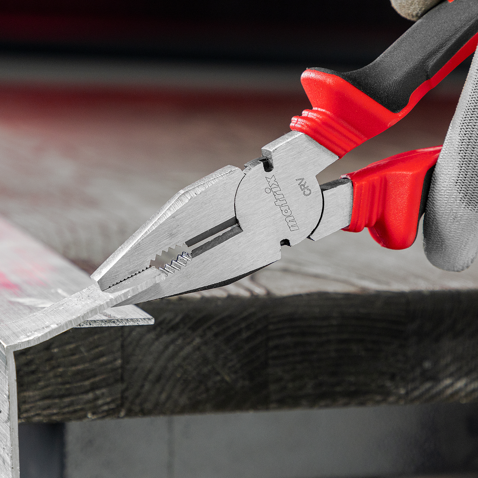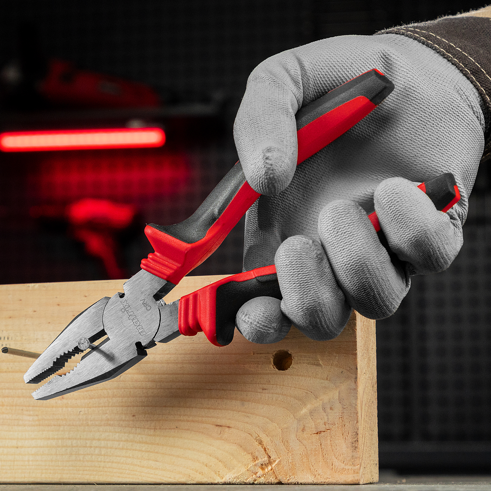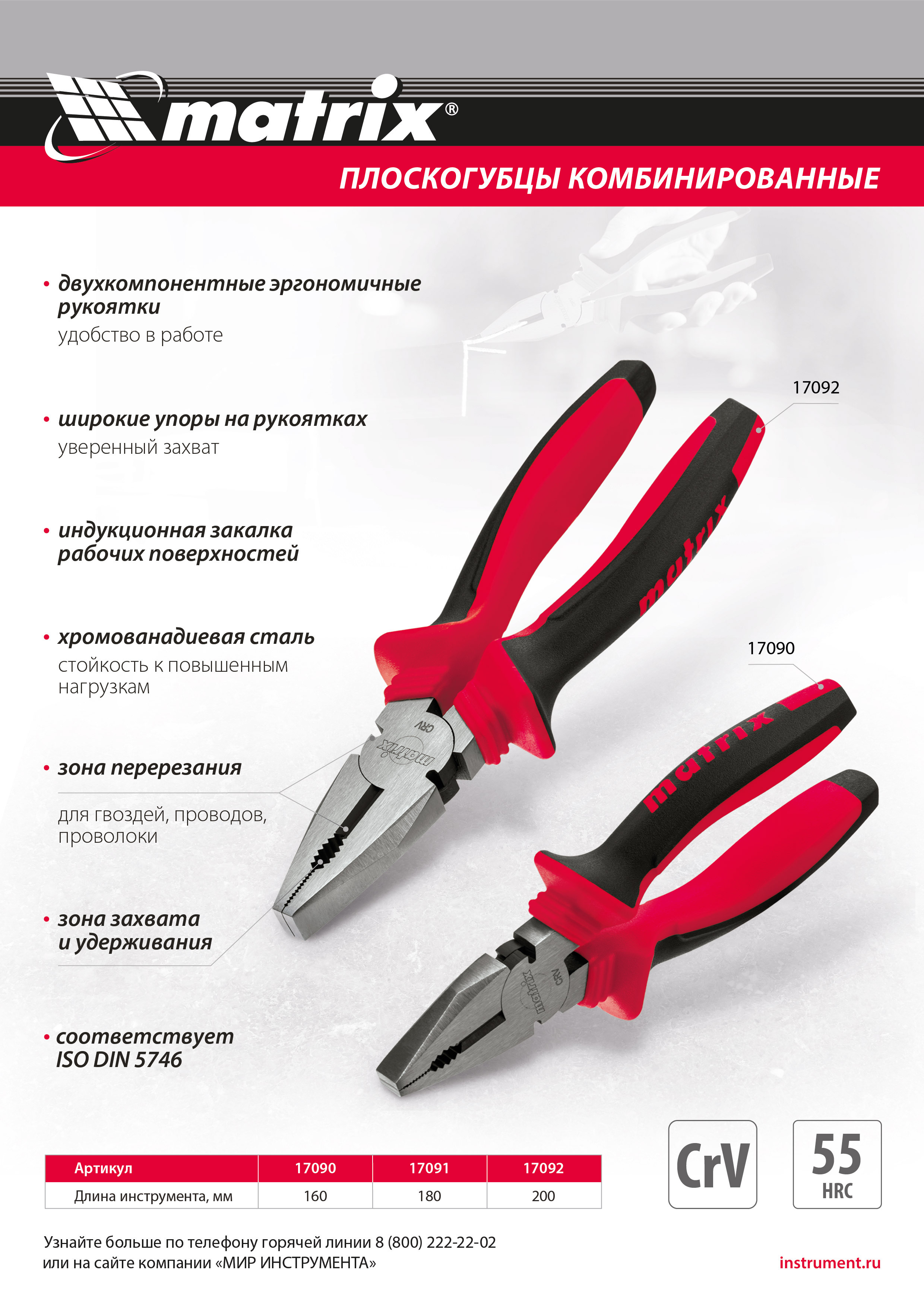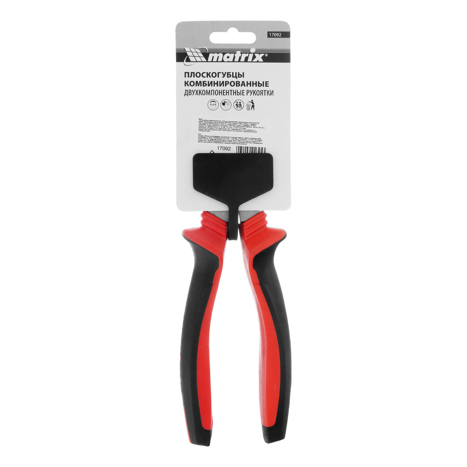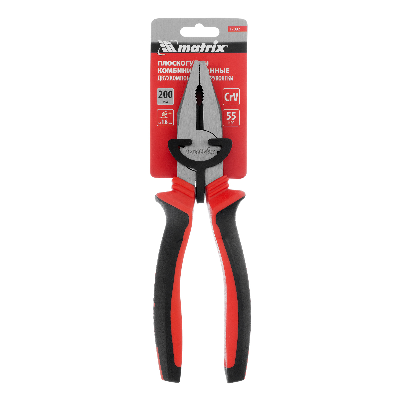 Комбинированные плоскогубцы Matrix 17092 длиной 200 мм, из хромованадиевой стали, с двухкомпонентными рукоятками, предназначены для захвата, сгибания и удержания деталей различной формы. Режущие части позволяют перерезать провода и стальную проволоку диаметром до 1,6 мм. Инструмент пригодится слесарю и монтажнику для проведения работ по наладке оборудования, монтажу конструкций, а также для решения других задач.
