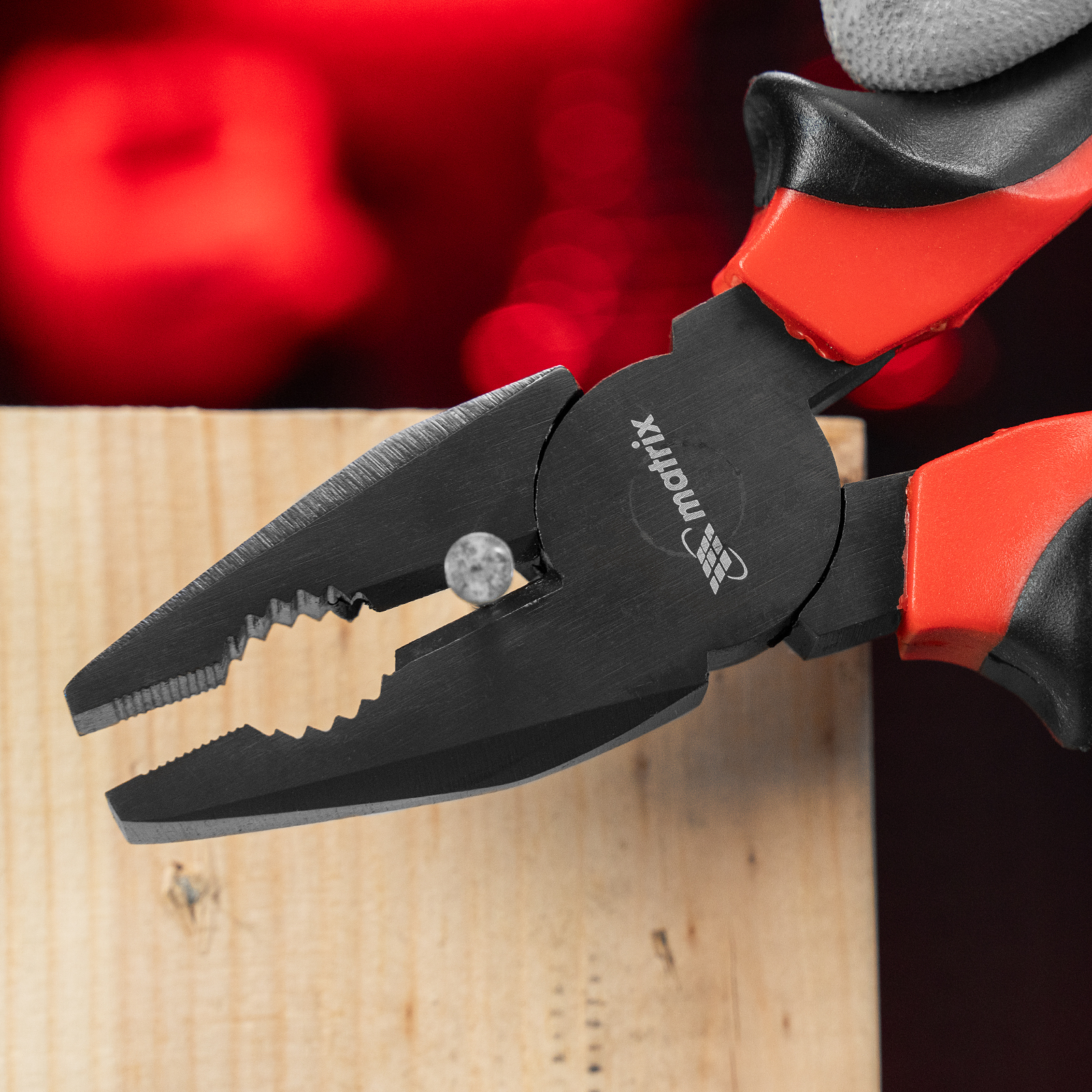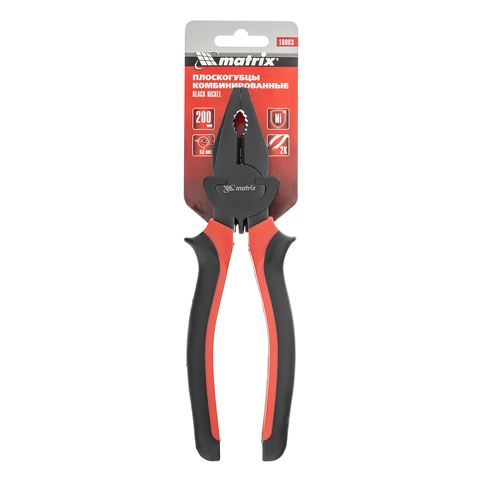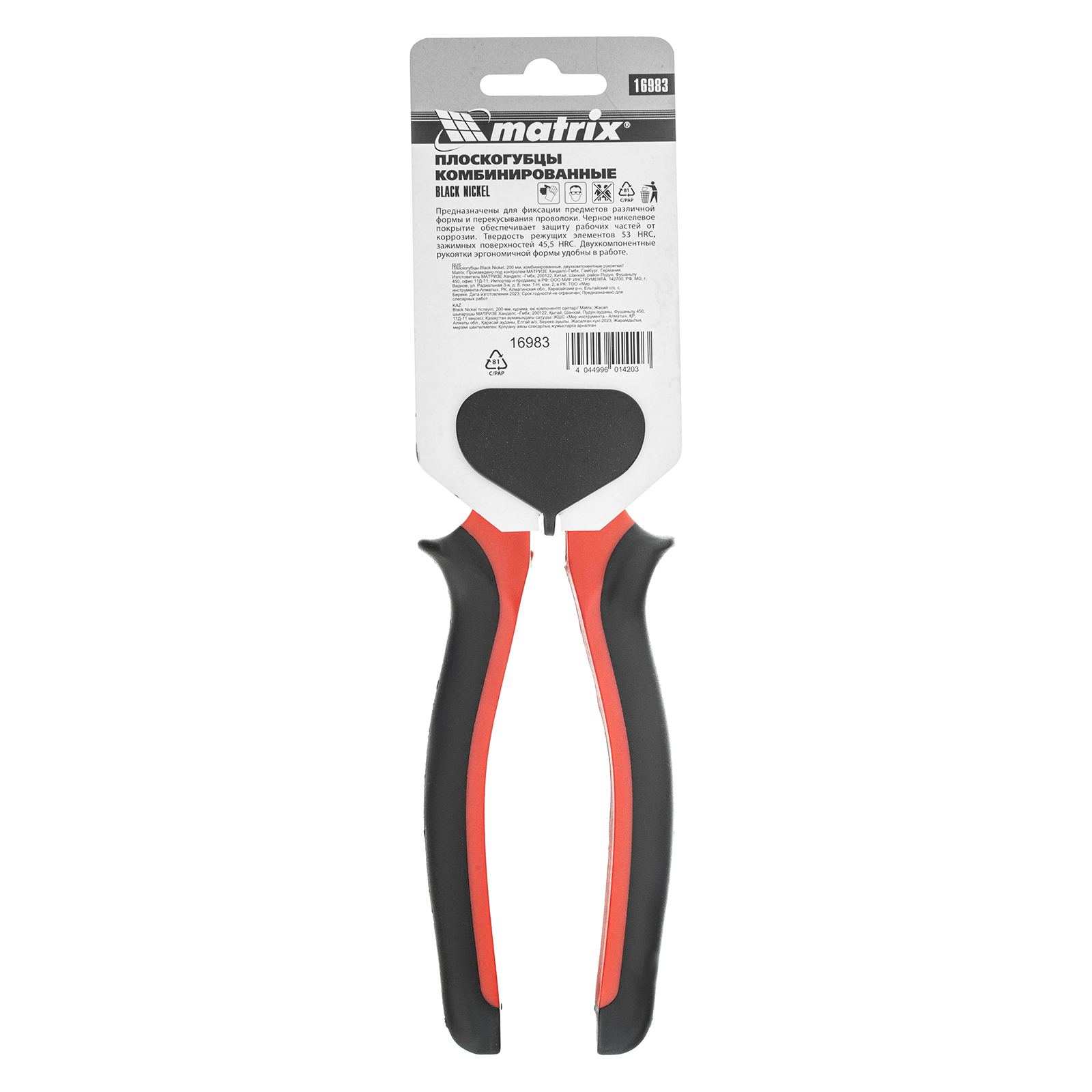 Комбинированные плоскогубцы Matrix Black Nickel 16983 длиной 200 мм, с двухкомпонентными рукоятками, используются для фиксации заготовок, крепежных элементов и других деталей, а также для разрезания проводов и проволоки. Губки с зазубренной поверхностью и специальными выемками способны удерживать как плоские, так и круглые предметы. Плоскогубцы применяются в профессиональной и бытовой сфере.