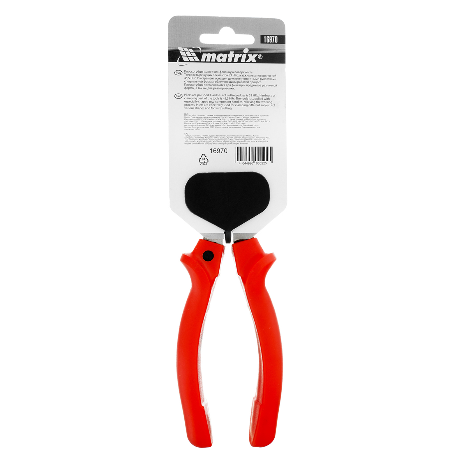 Комбинированные шлифованные плоскогубцы Matrix Standard 16970 длиной 180 мм, с пластмассовыми рукоятками, предназначены для захвата и удерживания заготовок, крепежных элементов, проволоки и проводов. Благодаря шлифованной поверхности инструмент обладает повышенной механической прочностью. Форма губок позволяет фиксировать круглые предметы, а режущими кромками можно перекусывать проводки и проволоку. Плоскогубцы применяют в строительном, слесарном и столярном деле, также инструмент полезен во время ремонта автомобилей и в быту.