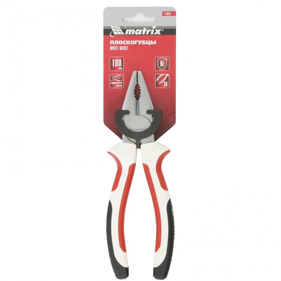 Никелированные плоскогубцы Matrix White Nickel 17075 длиной 180 мм, с трехкомпонентными рукоятками, надежно удерживают плоские и круглые детали благодаря губкам специальной формы с зазубренной поверхностью. Острые режущие кромки легко перекусывают проволоку и провода. Плоскогубцы применяются во время проведения строительных, ремонтных, монтажных работ, будут полезны и в быту.