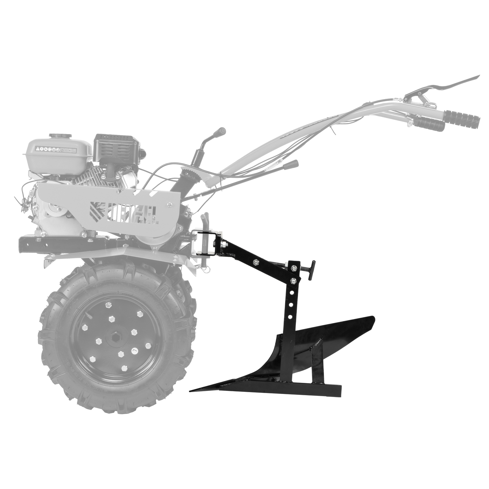 - Универсальность — плуг можно установить на большинство мотоблоков, представленных на российском рынке.