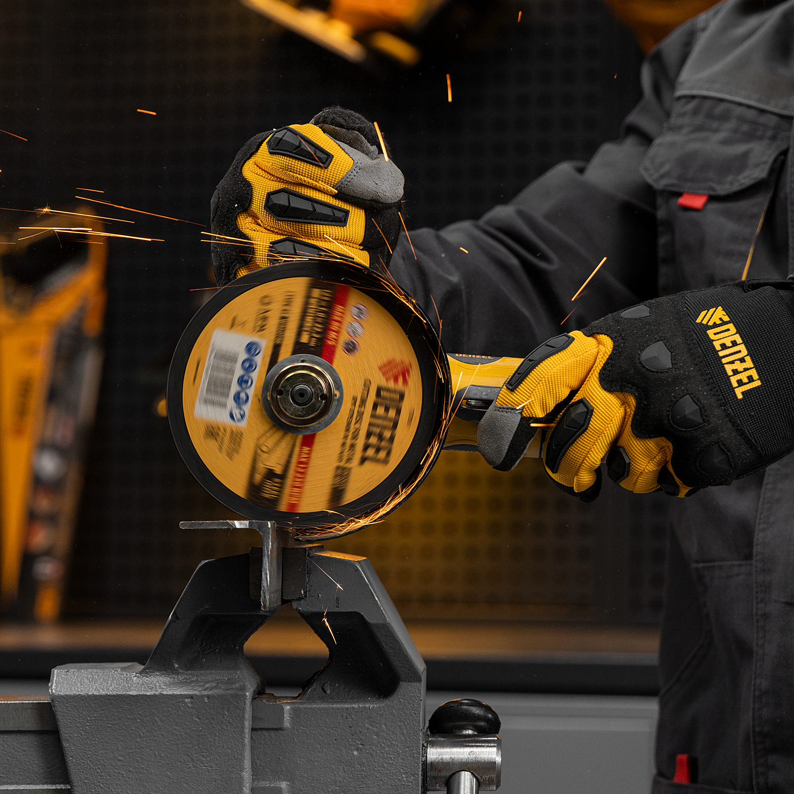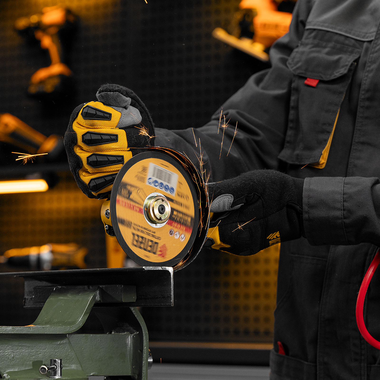 - Высокая эффективность — инструмент справляется с разрезанием материалов толщиной до 35 мм, оптимально подходит для профессионального применения на строительных площадках, в сварочных и арматурных цехах, автосервисах.
