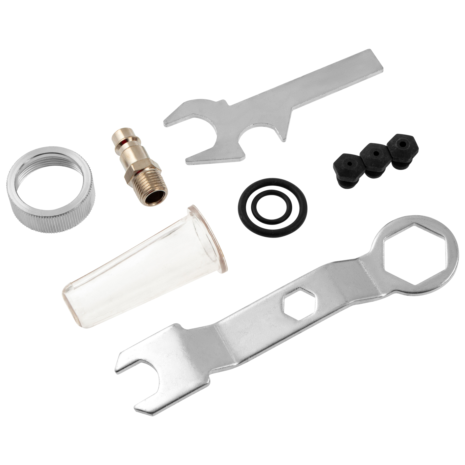 - Готовность к работе — к инструменту прилагаются штуцер для подсоединения к компрессору, ключ и набор уплотнений, поэтому использовать его можно сразу после приобретения.