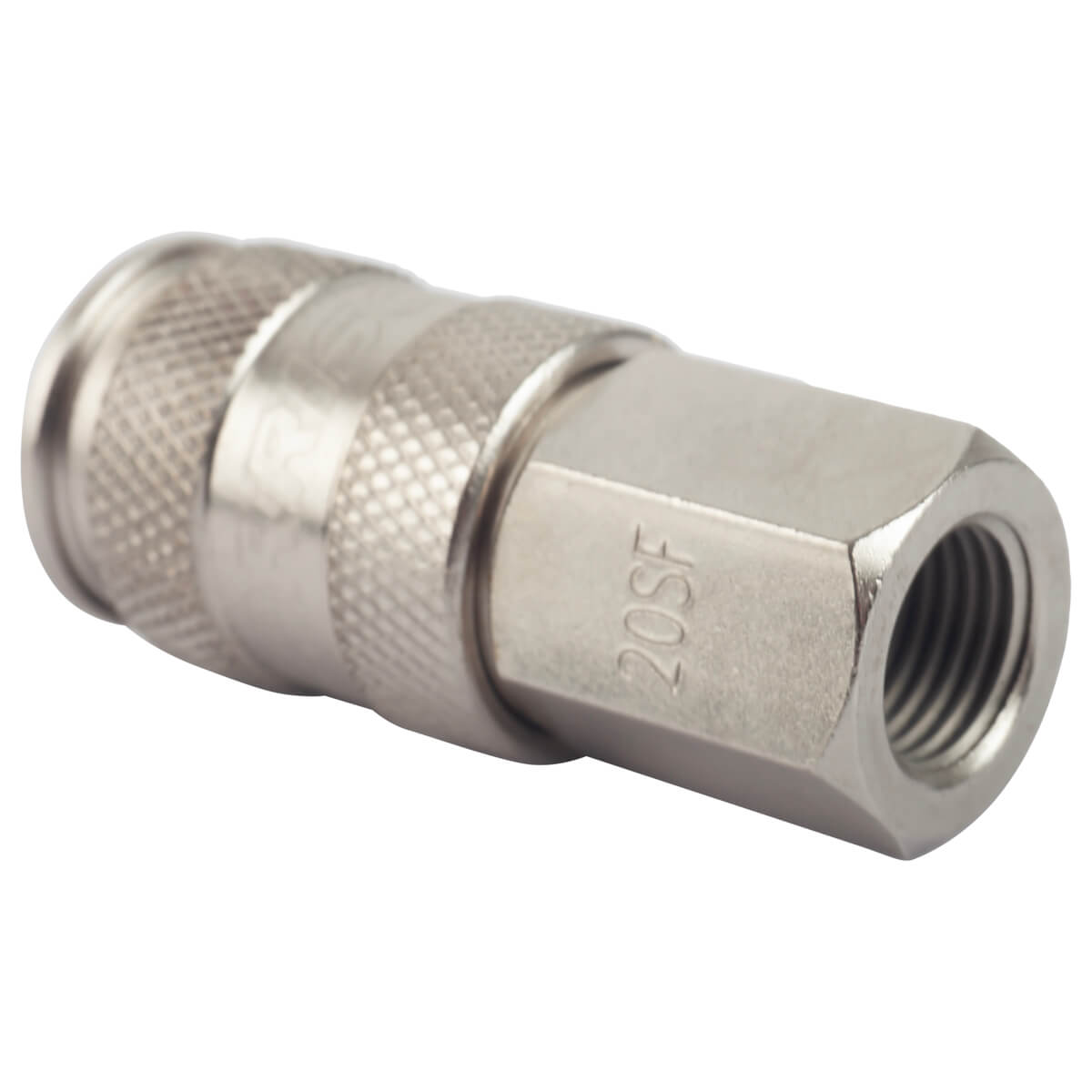 Пневматическое быстроразъемное соединение Harrison HRS-20SFA — это компактный и удобный в использовании пневматический разъем, который обеспечивает быстрое и надежное соединение. Внутренняя резьба 1/4″ «мама» позволяет использовать фитинг с различными типами пневматических инструментов.