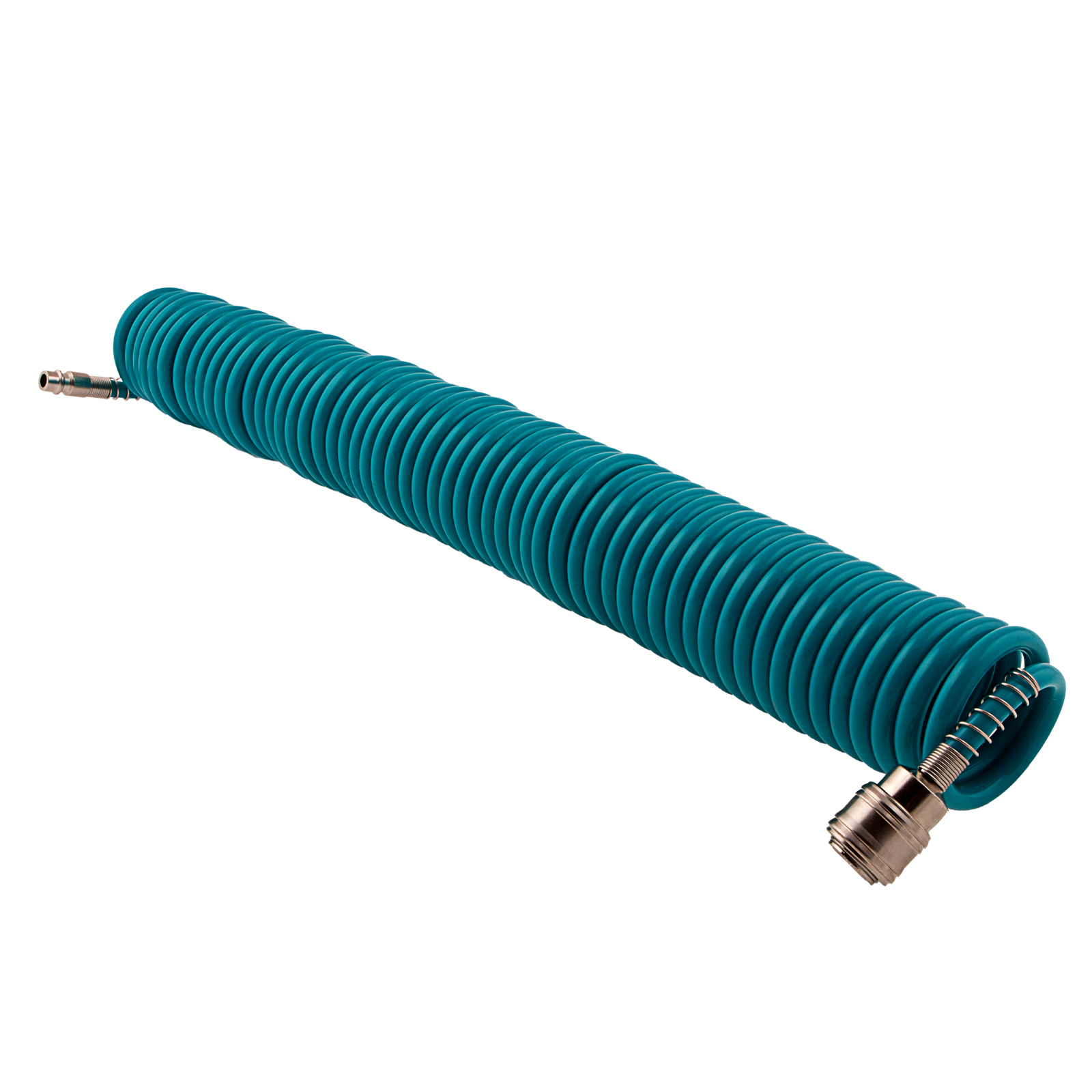 Профессиональный полиуретановый спиральный шланг Stels 57007 из сырья BASF, длиной 10 м, с быстросъемными соединениями, предназначен для подключения пневматического оборудования. Благодаря увеличенной толщине рукав выдерживает давление до 24 бар, поэтому подходит для мощного компрессорного оборудования. Используется в строительстве и на производственных предприятиях.