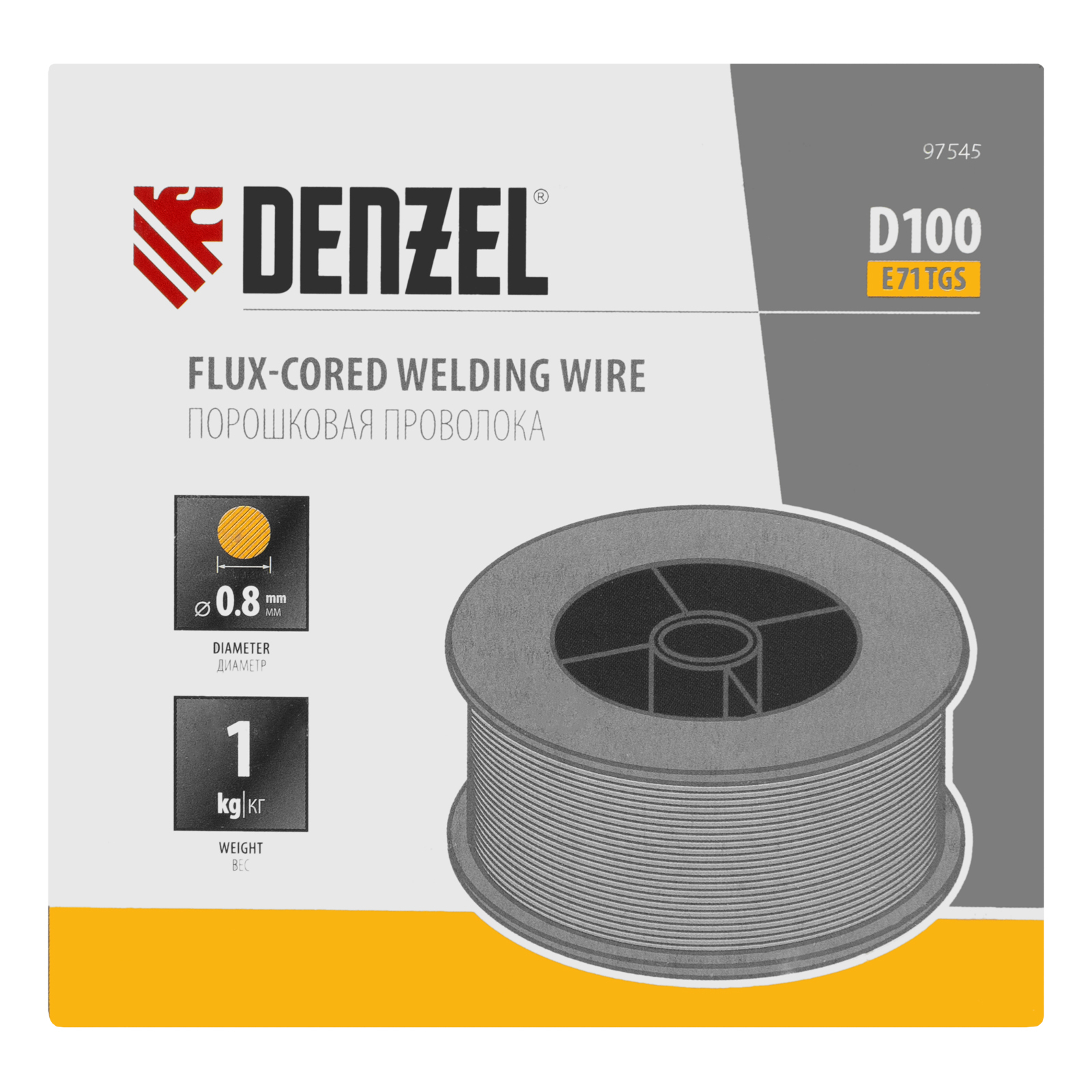 Порошковая проволока Denzel E71TGS 97545 диаметром 0,8 мм и весом 1 кг, на катушке типа D100, предназначена для полуавтоматической сварки MIG/MAG углеродистых и низколегированных сталей без среды защитных газов. Необходима профессиональным сварщикам, пригодится также частному мастеру.