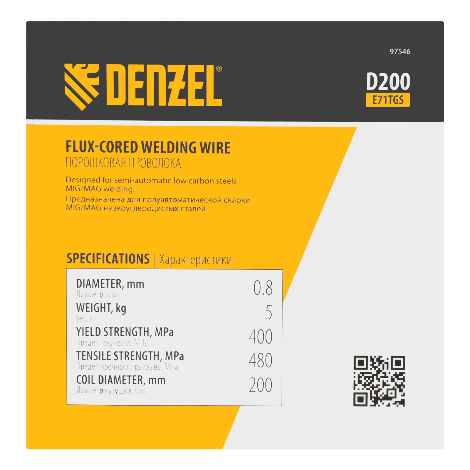 Порошковая проволока Denzel E71TGS 97546 диаметром 0,8 мм и весом 5 кг, на катушке типа D200, предназначена для полуавтоматической сварки MIG/MAG углеродистых и низколегированных сталей без среды защитных газов. Необходима профессиональным сварщикам, пригодится также частному мастеру.