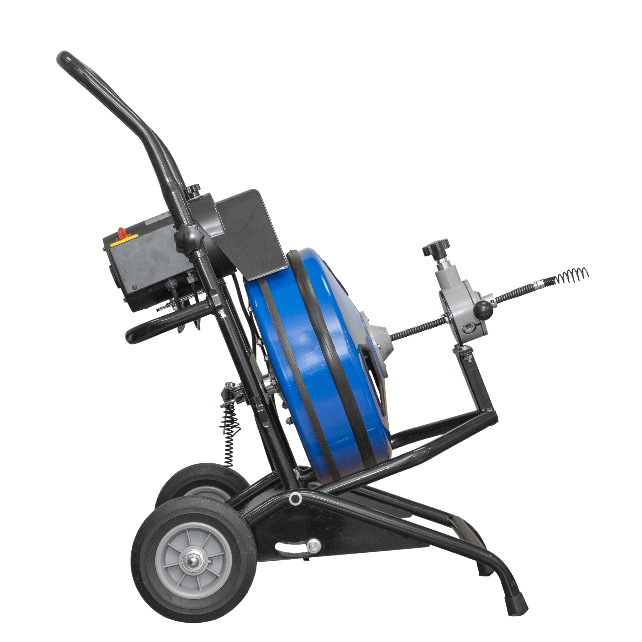 Прочистная машина с автоподачей SP-HD75 для труб от 50мм до 150мм. Самая мощная среди аналогичных прочистных машин, имеющая индукционный двигатель 500 Вт..Рабочая спираль 13мм со стальным сердечником 35 метров, большие транспортировочные колеса, автоподача и 4 насадки.Преимущества: