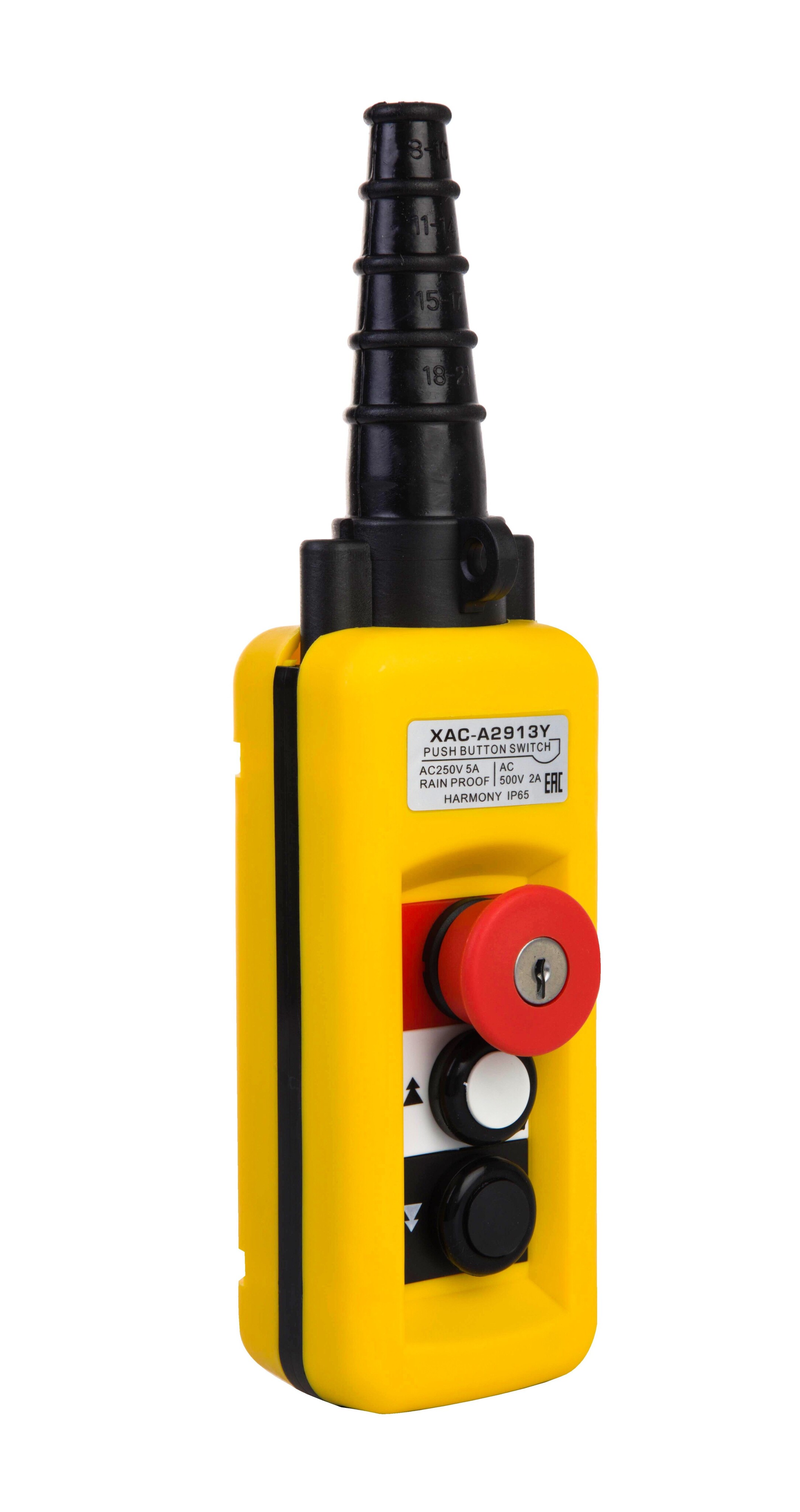 Пульт 2 кнопочный, 2 ступенчатые кнопки + СТОП БУТОН + ключ (XАС-A2913Y), защита IP65