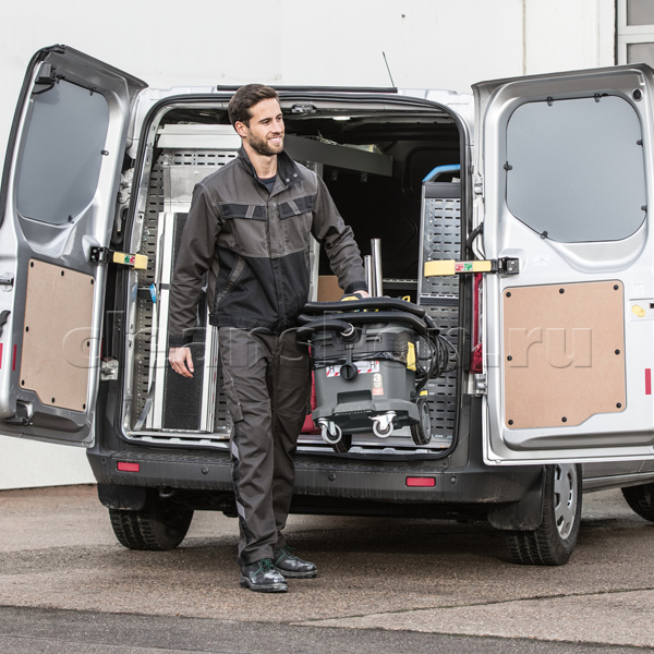 NT 30/1 Tact Te H оснащен антистатической системой с токопроводящими принадлежностями для полной защиты пользователей от электростатических разрядов. Пылесос можно использовать для поглощения жидкости. Версия Te оснащена штепсельной розеткой с автоматикой включения/выключения для работы с электроинструментом. В стандартную комплектацию NT 30/1 Tact Te H входит:- всасывающий шланг с коленом, электропроводный, 4 м;