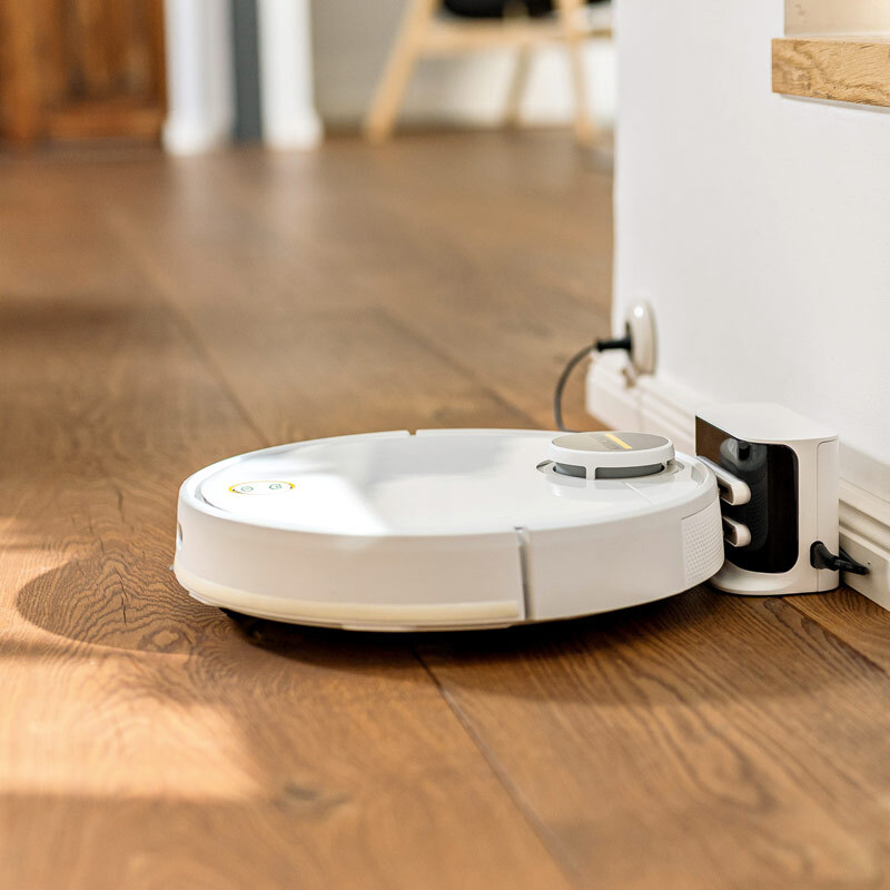 При помощи мобильного приложения робот-пылесос RCV 3 можно отправить в начальное путешествие, в ходе которого его лидарная система навигации автоматически составляет план помещений. Для каждого помещения можно задать индивидуальные параметры уборки, в частности, определить участки сухой и влажной уборки, а также зоны, которые не должны очищаться аппаратом. Датчики перепада высот исключают падение робота-пылесоса с лестниц.