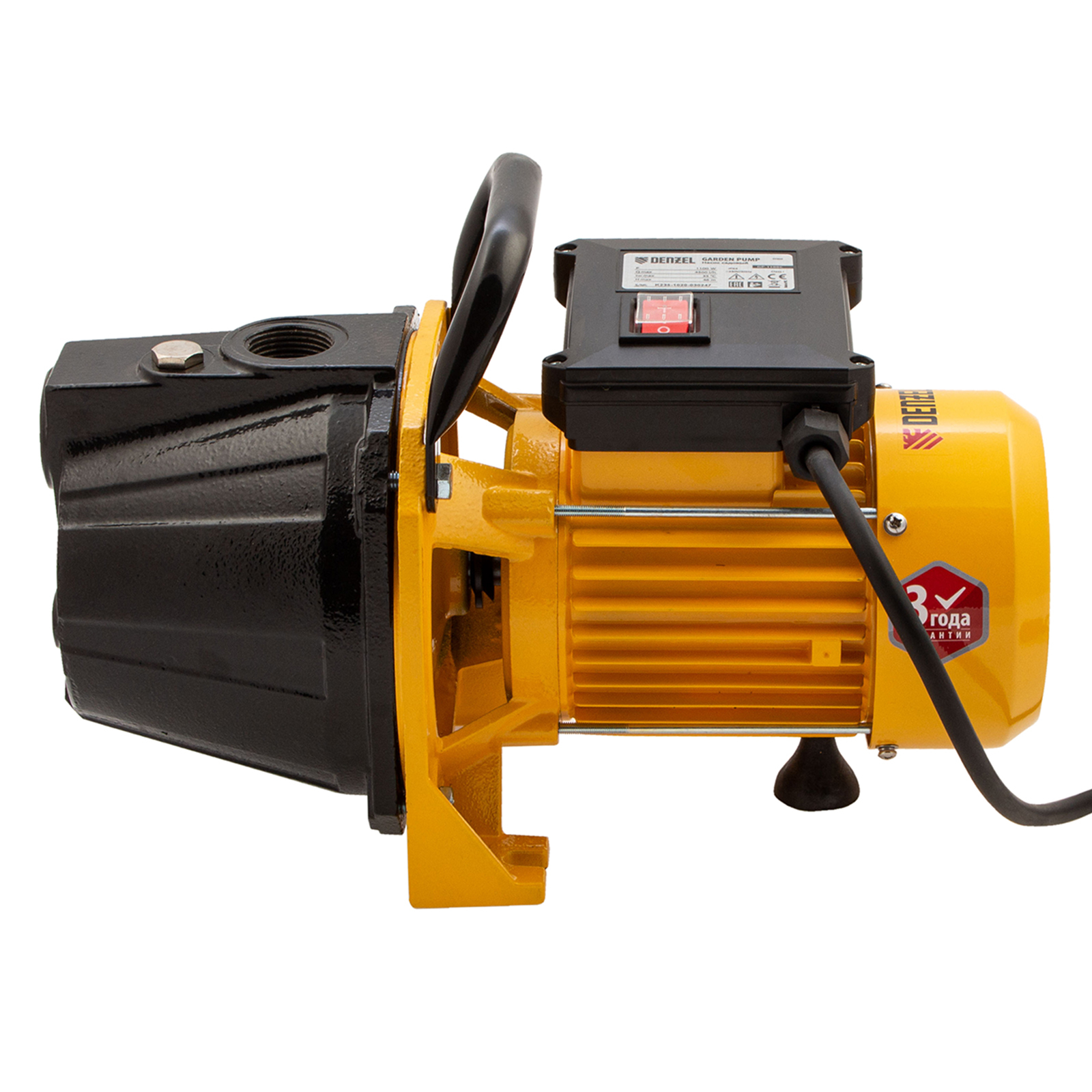 Садовый поверхностный насос Denzel GP1100C 97203 с корпусом насосной части из чугуна, мощностью 1100 Вт и производительностью 4500 л/ч, обеспечивает стабильный напор до 46 м и используется для подъема чистой воды из резервуаров и колодцев с глубины до 8 м. Подходит для организации систем полива на дачном участке и повышения давления в водопроводной системе загородного дома. Высокая производительность позволяет применять насос в системах с большим количеством водоразборных точек.