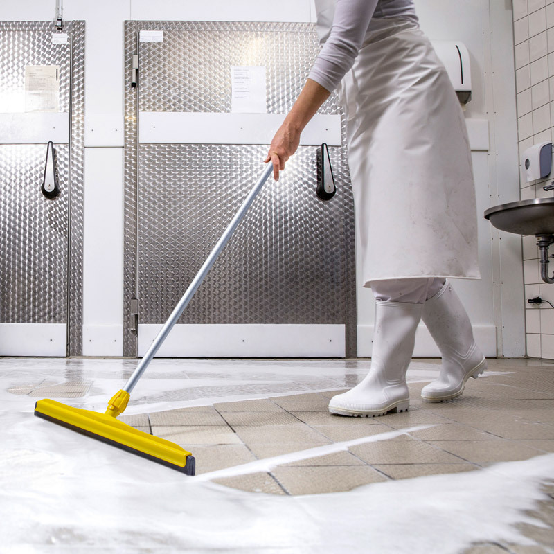 Сгон для пола Karcher с двойной чёрной полоской из вспененного неопрена справляется даже со сложными задачами уборки. Вставка шириной 55 см удаляет большое количество жидкости за короткое время.